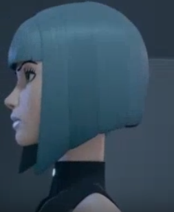 Super hot android with blue lipstick and sleeveless cyber unitard.