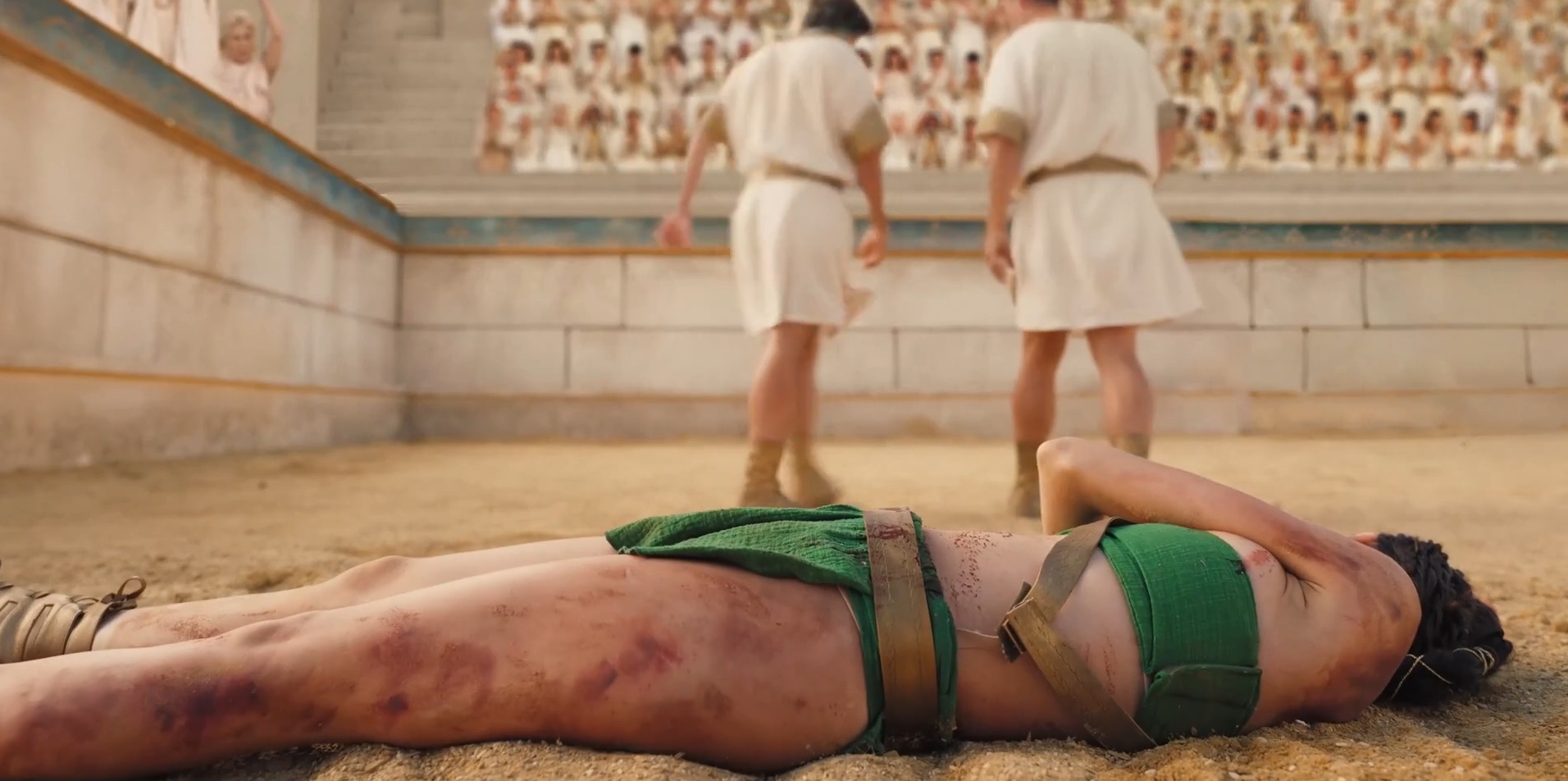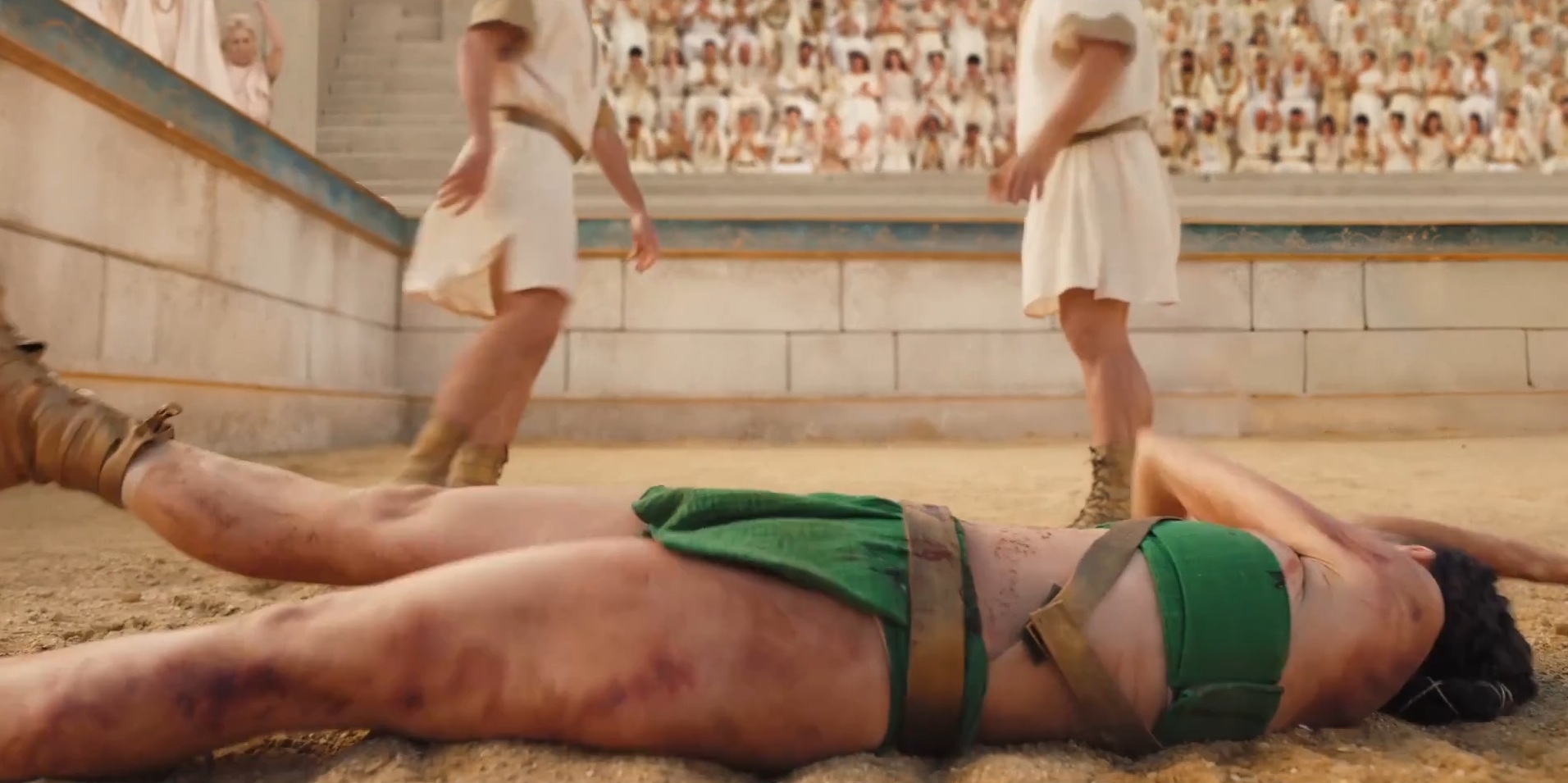P.S. Even though this is an obvious gladiator fight, the gladiators are being called dancers and they need to jump over bulls because the snowflake part of the audience will be upset over the violence against animals. But don't let it ruin the scene for you. It starts at 12:30 and ends at 13:00. The next scene with another gladiators starts immediately and abrupts at 17:40. It continues at 45:30 and ends at 49:30. No deaths, but some good upskirts.