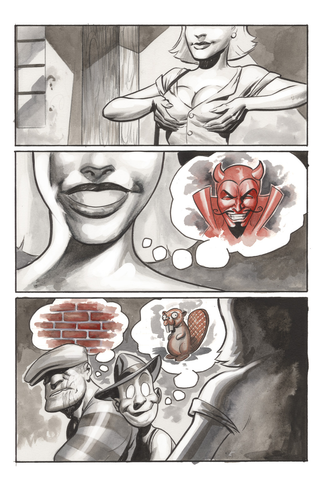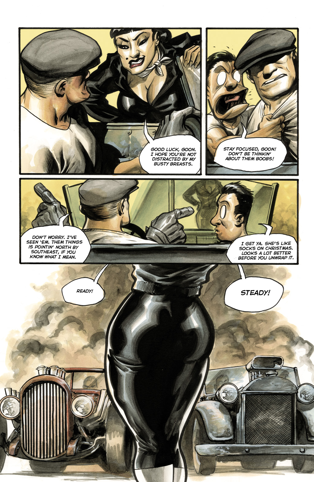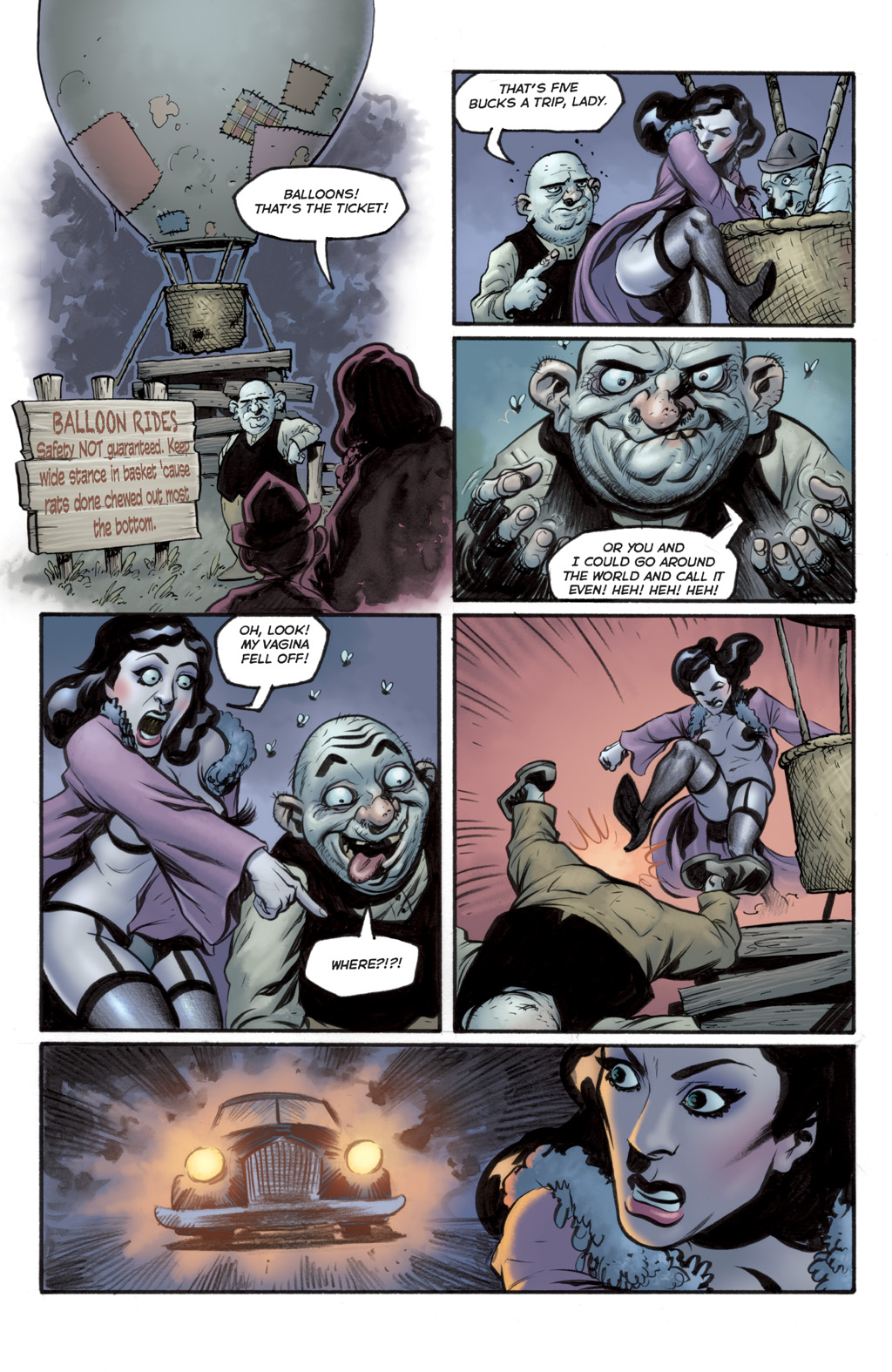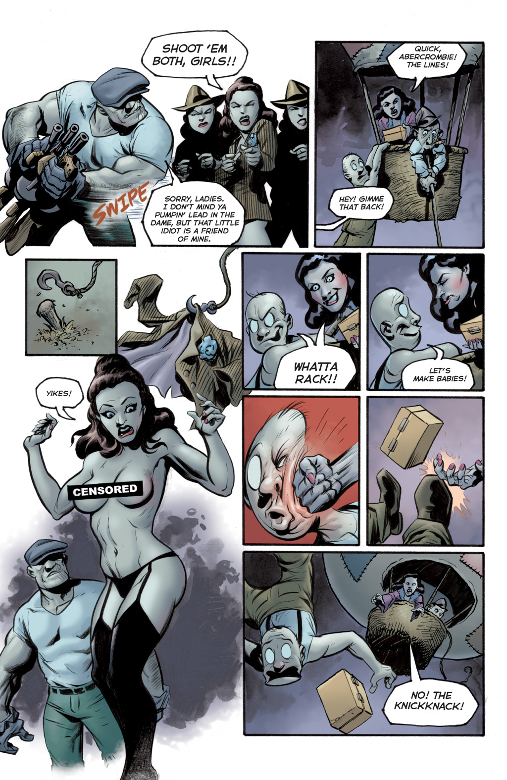 Roxi DLite - queen of Burleque. A con-woman, seductress and murderer who comes to town, she takes over the burlesque (and totally has hot lesbian sex with the harpies) before robbing the Goon. She gets off with a hot-air baloon in the end, though without the necklace. She seems to like running around without wearing much... especially not bras. :D