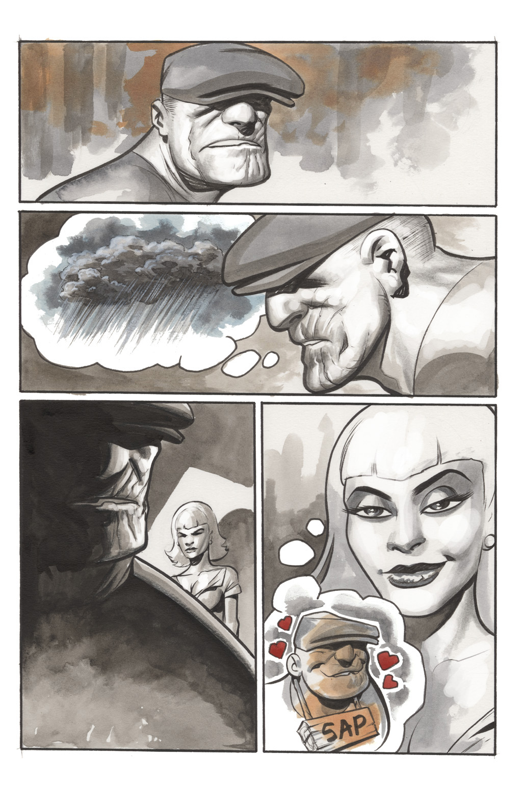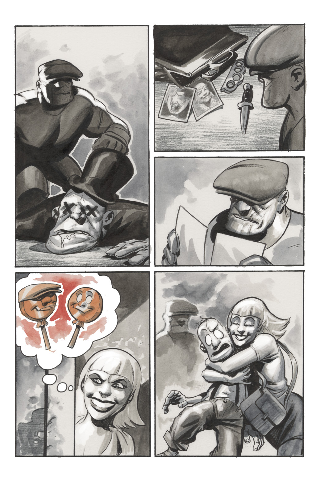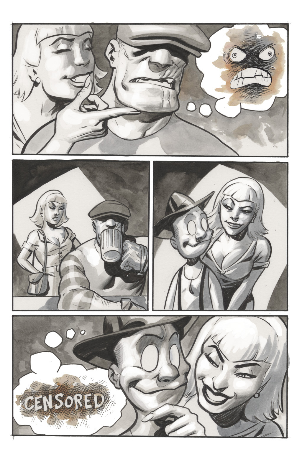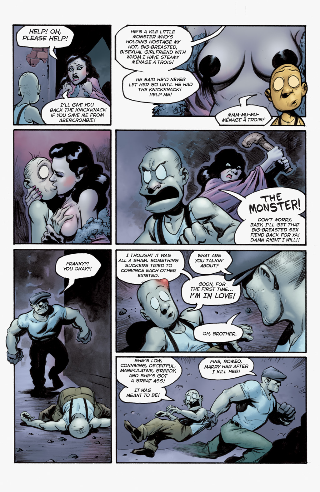 A nameless con artist lady from an issue without voice bubbles. She stole some necklace and came to town, looking for easily seduceable rubes. Of course her charms don't work on the Goon, but she wraps Frankie around her little finger, using him to protect herself from the hitman who comes after him. The Goon figures out the truth though, and she ends up dumped in the river in cement shoes alongside the hitman... quite a grisly fate, but then again the Goon is not a nice person.