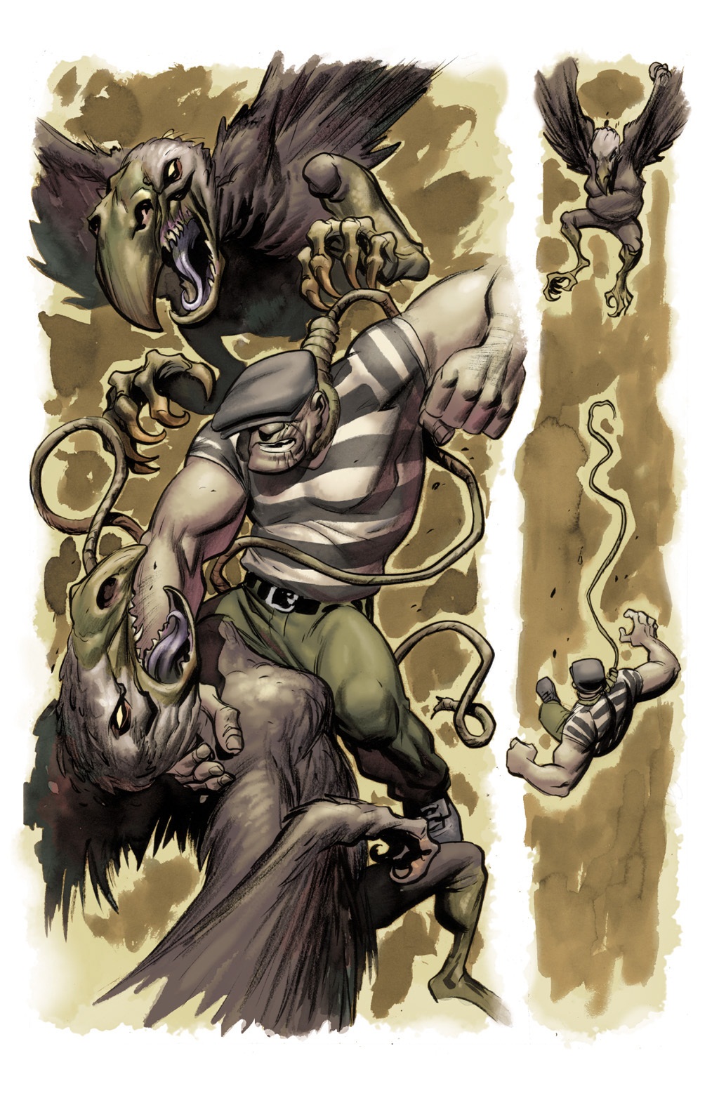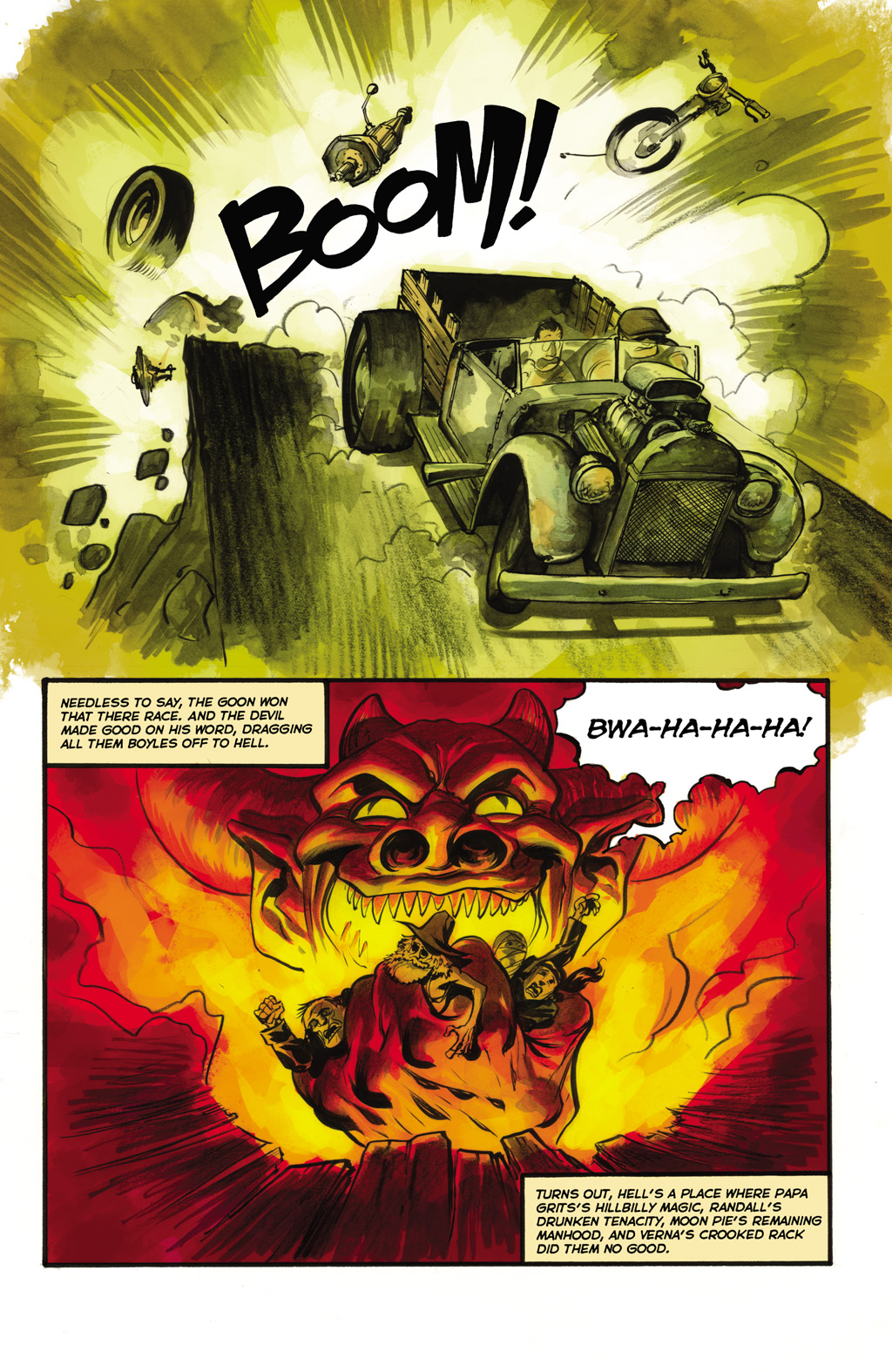 Verna Boyles from The Goon. She is a black widow type gal and tries to kill Goon after sex, ends up literally being dragged to hell by the devil after her family loses a race.