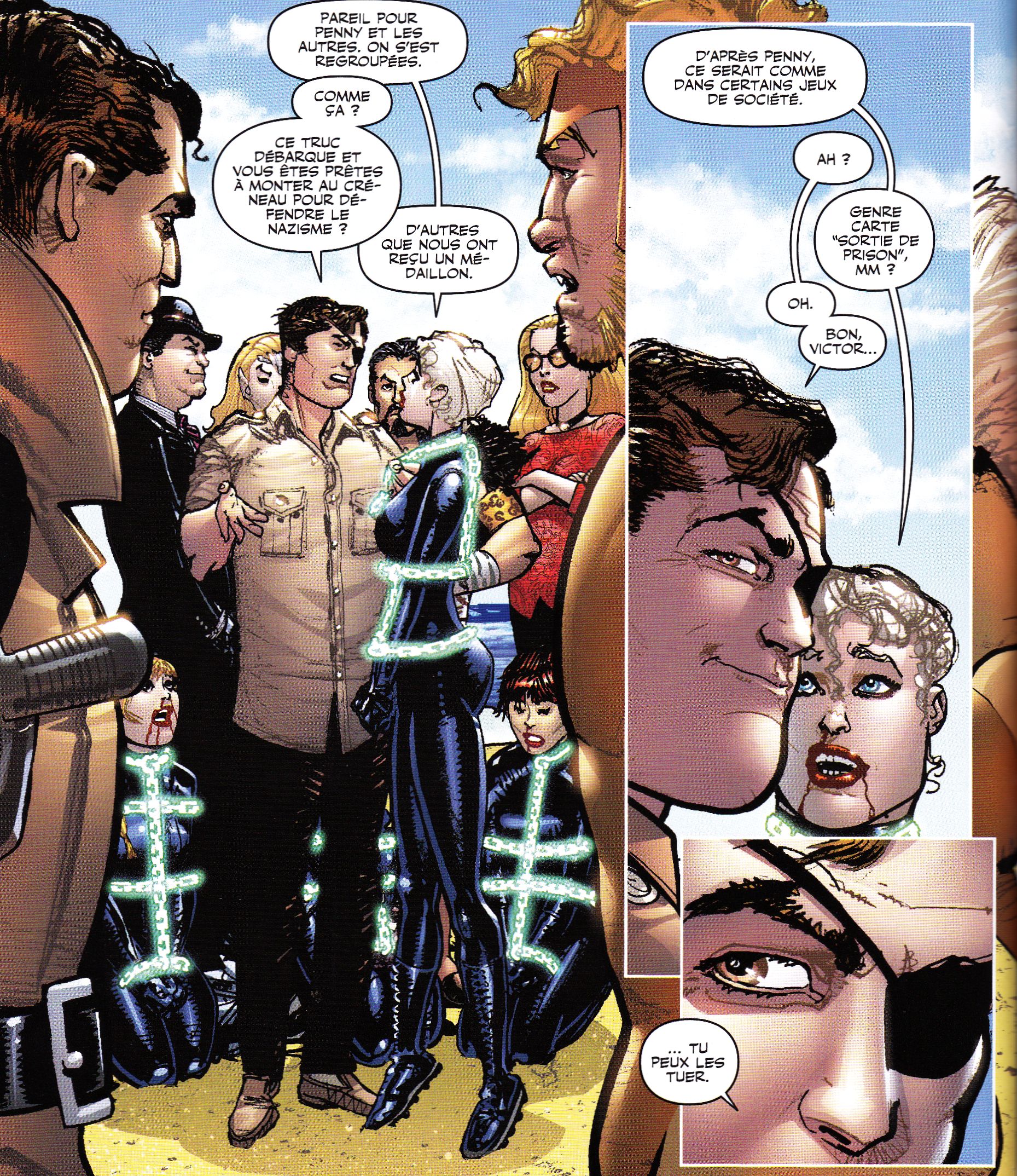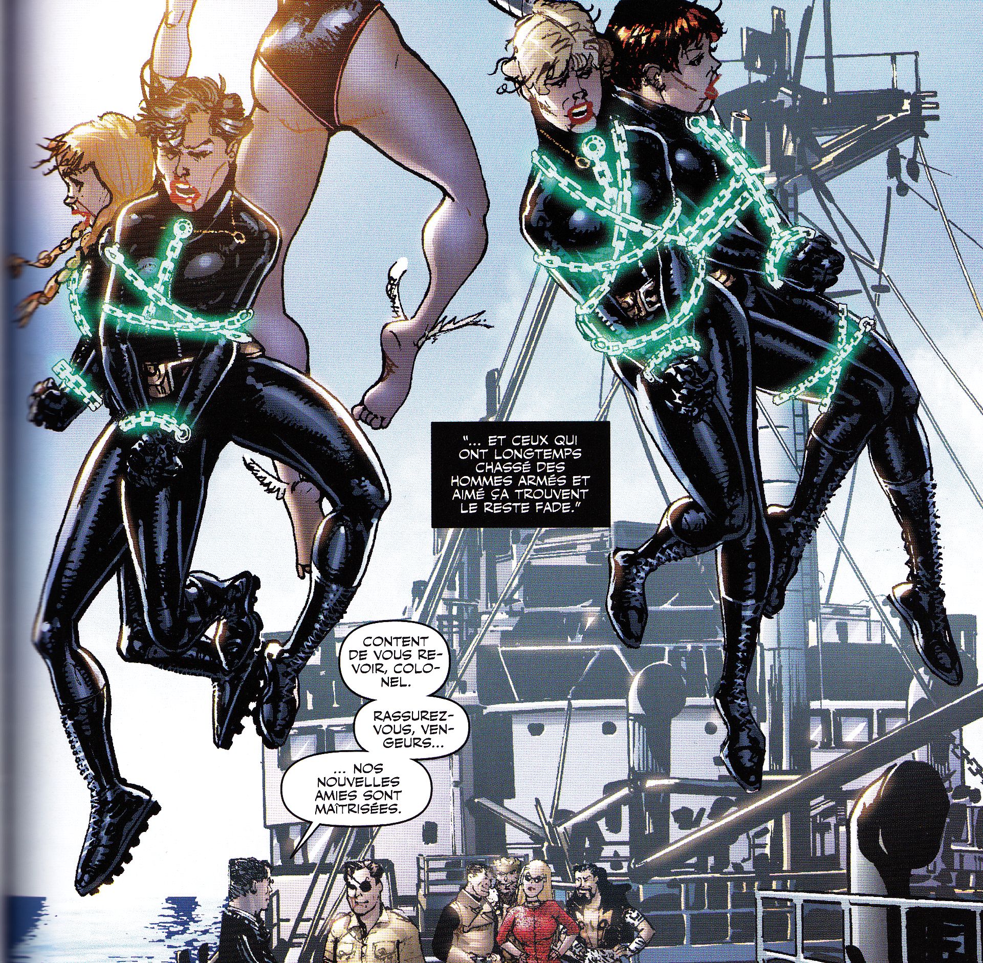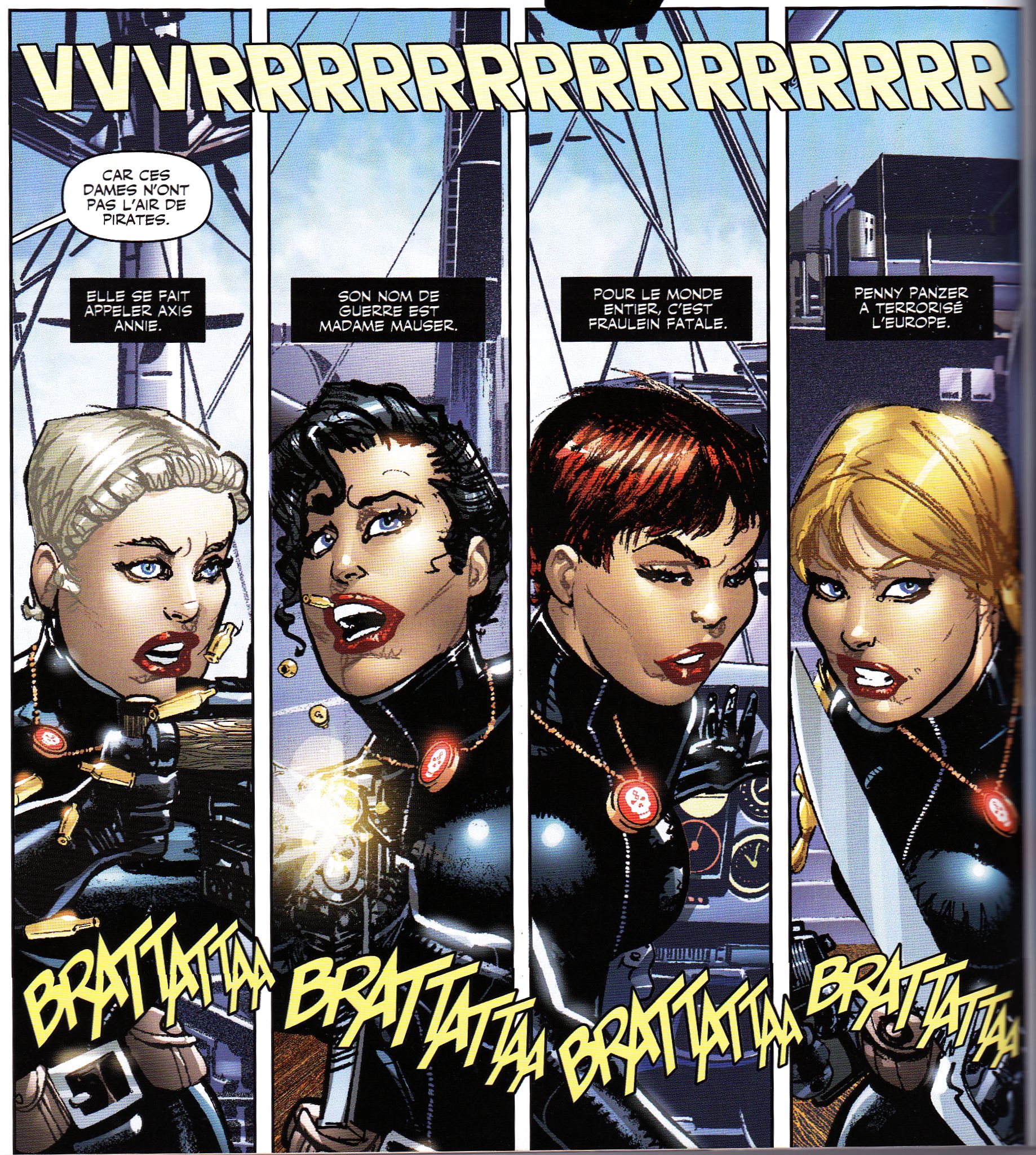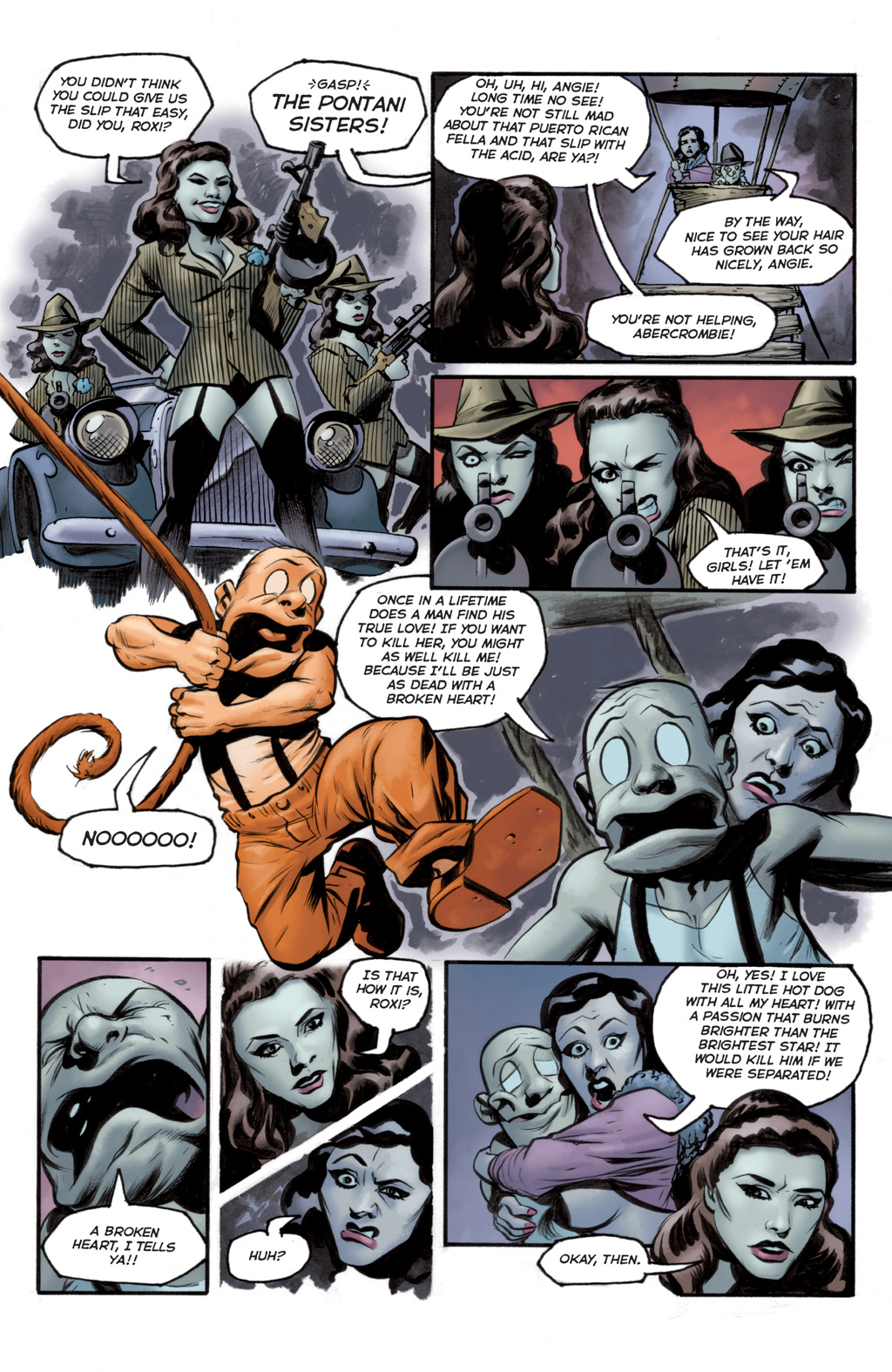 The Pontani sisters - a trio of pinstripe-suit (but only the top, no pants!) wearing classic gangsta girls who came to ice Roxi for a past slight. One of them gets her suit ripped off leaving her topless, and they end up going away to party with the Goon.