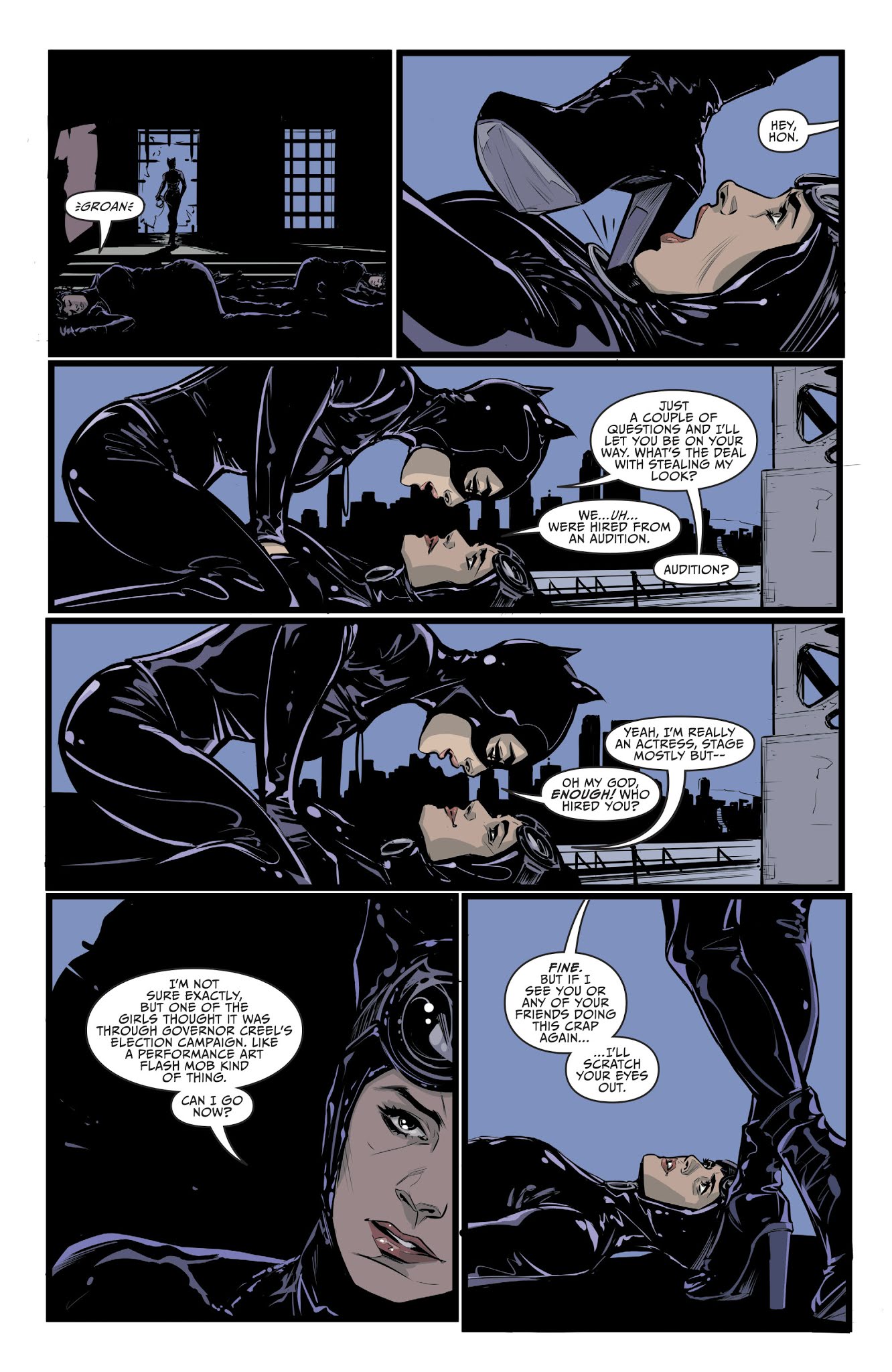 Ô! ok thanks for the info, and sorry for misspelling of Batgirl (they have nothing alike, I'm just dumb lol) here from the "same" comic of Batgirl (the one of 2016) issue 13, with the henchwoman of Velvet Tiger (just a little thing, no real action but still something :/)