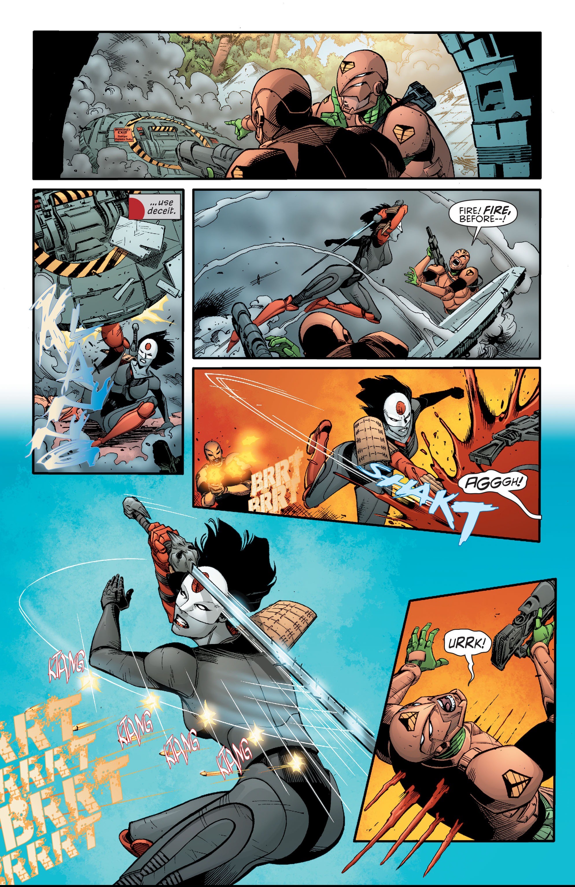 Policewoman and criminal do their best to shot each other to pieces
