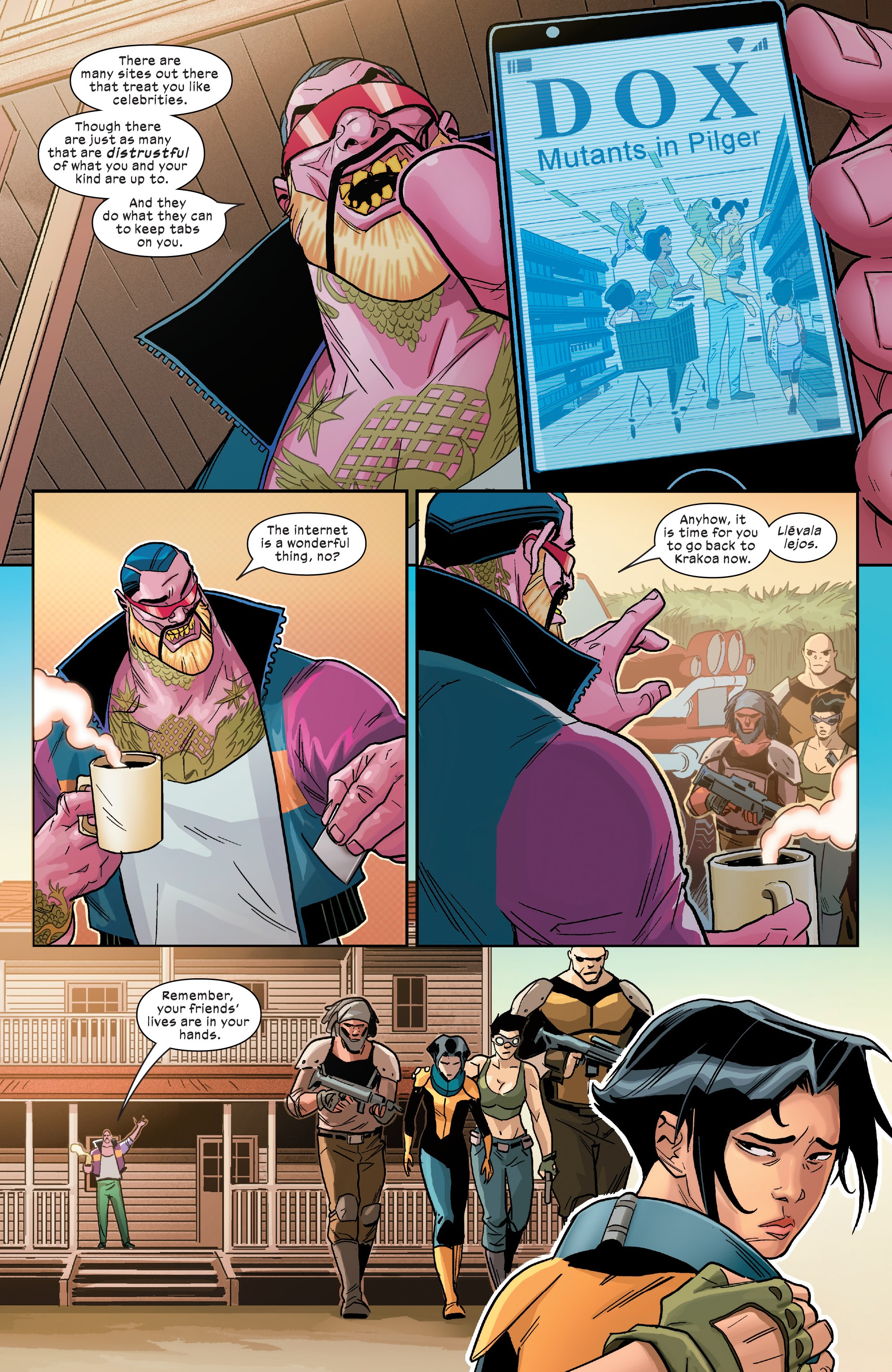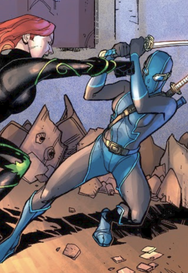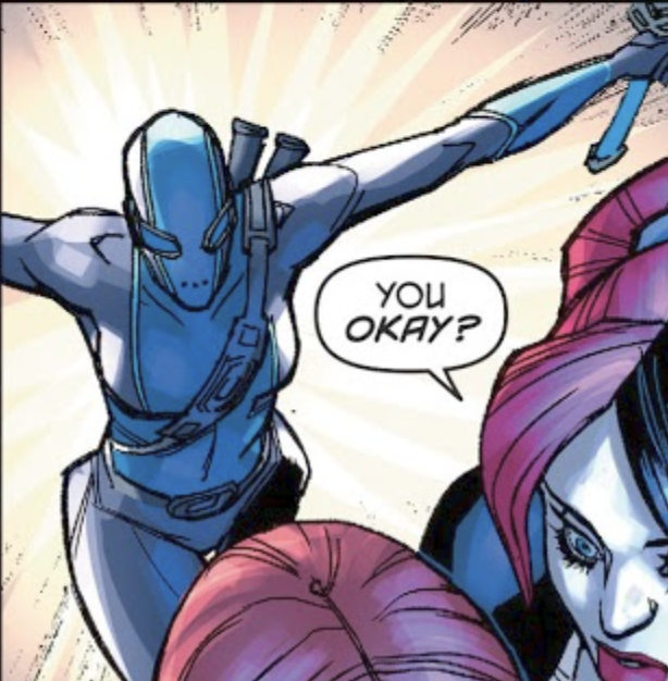 never shows up in the comics. Not issue one, not any other issue. The most you get of her is on another cover as like, a background image.
