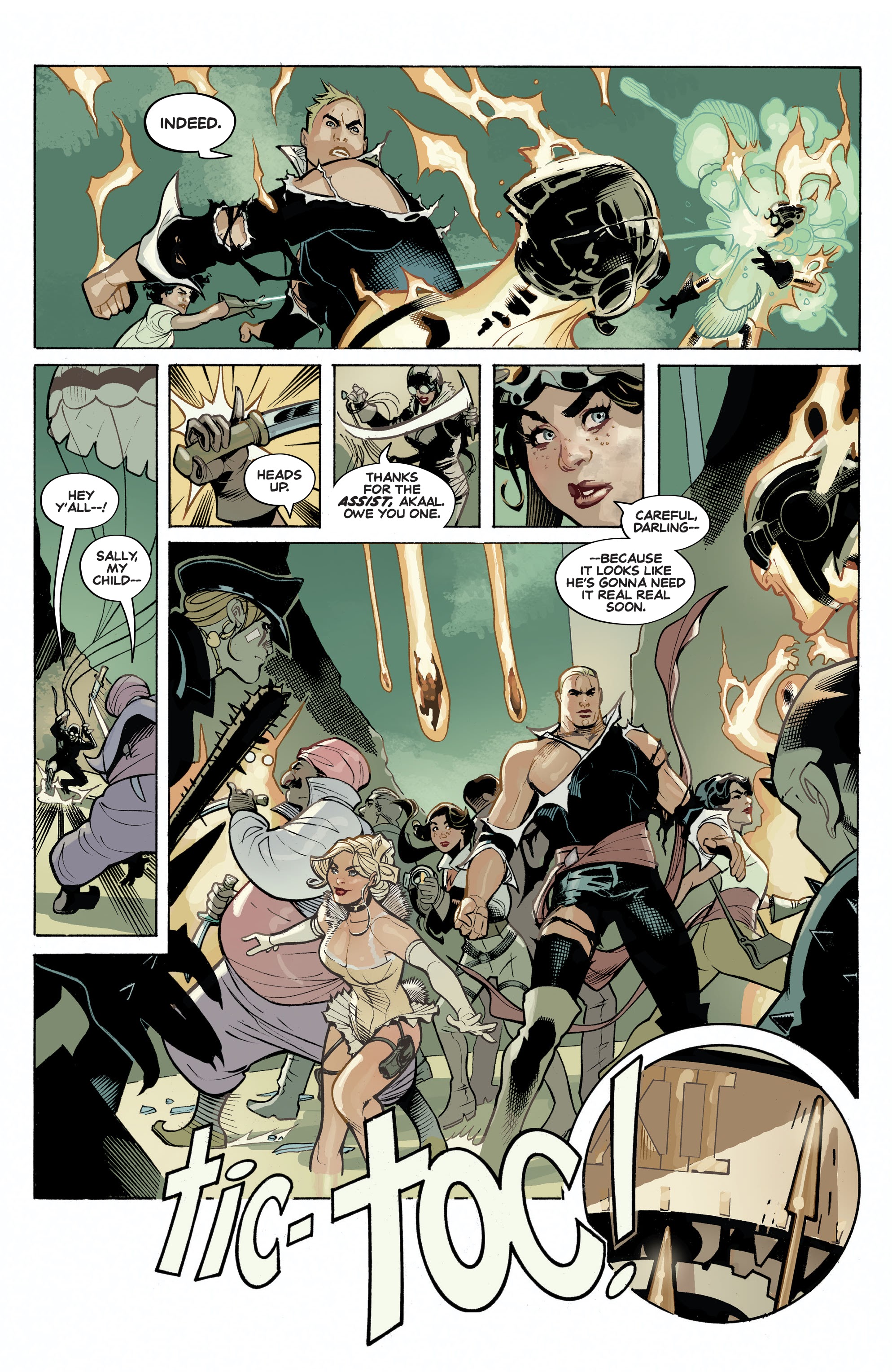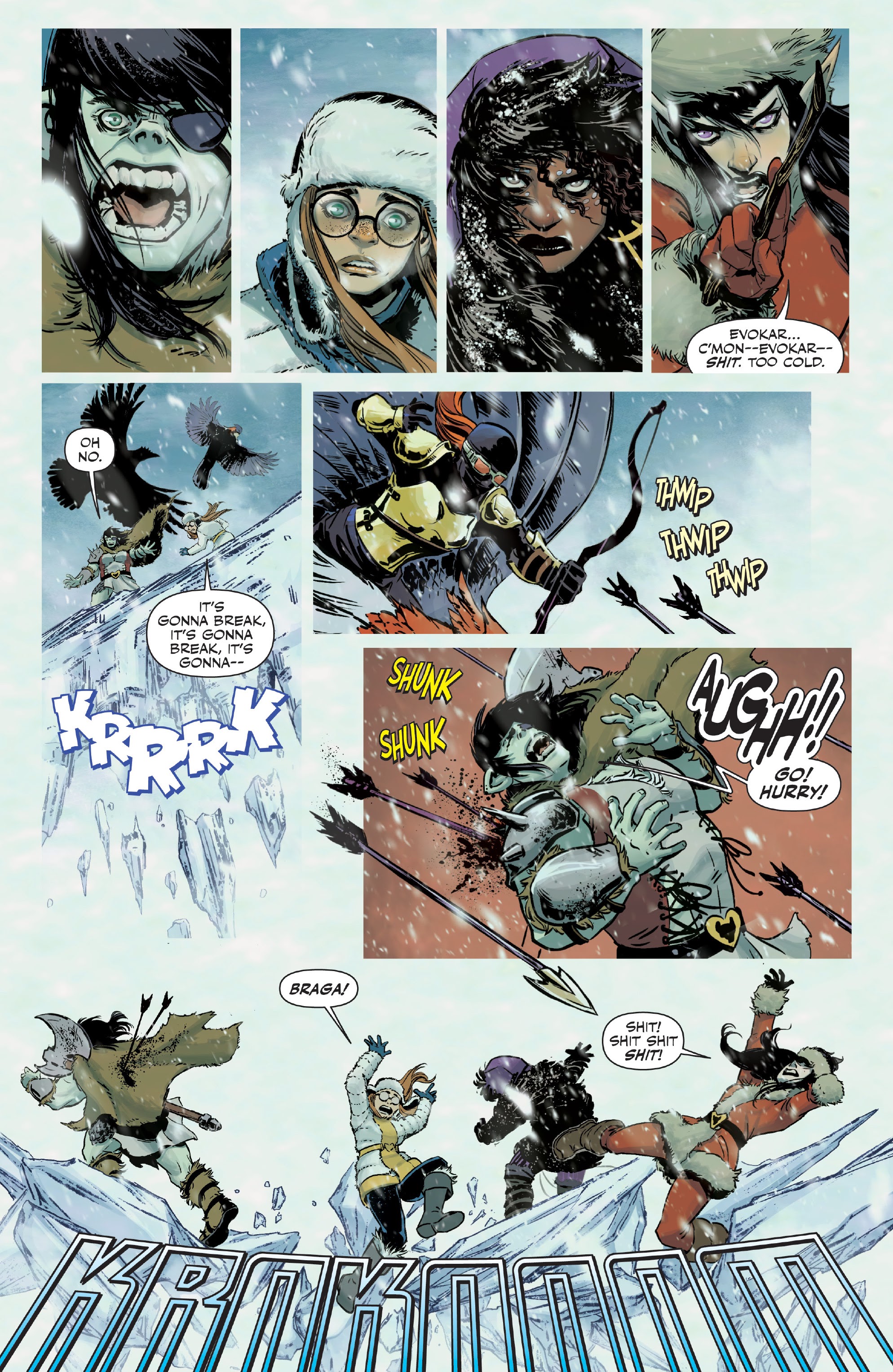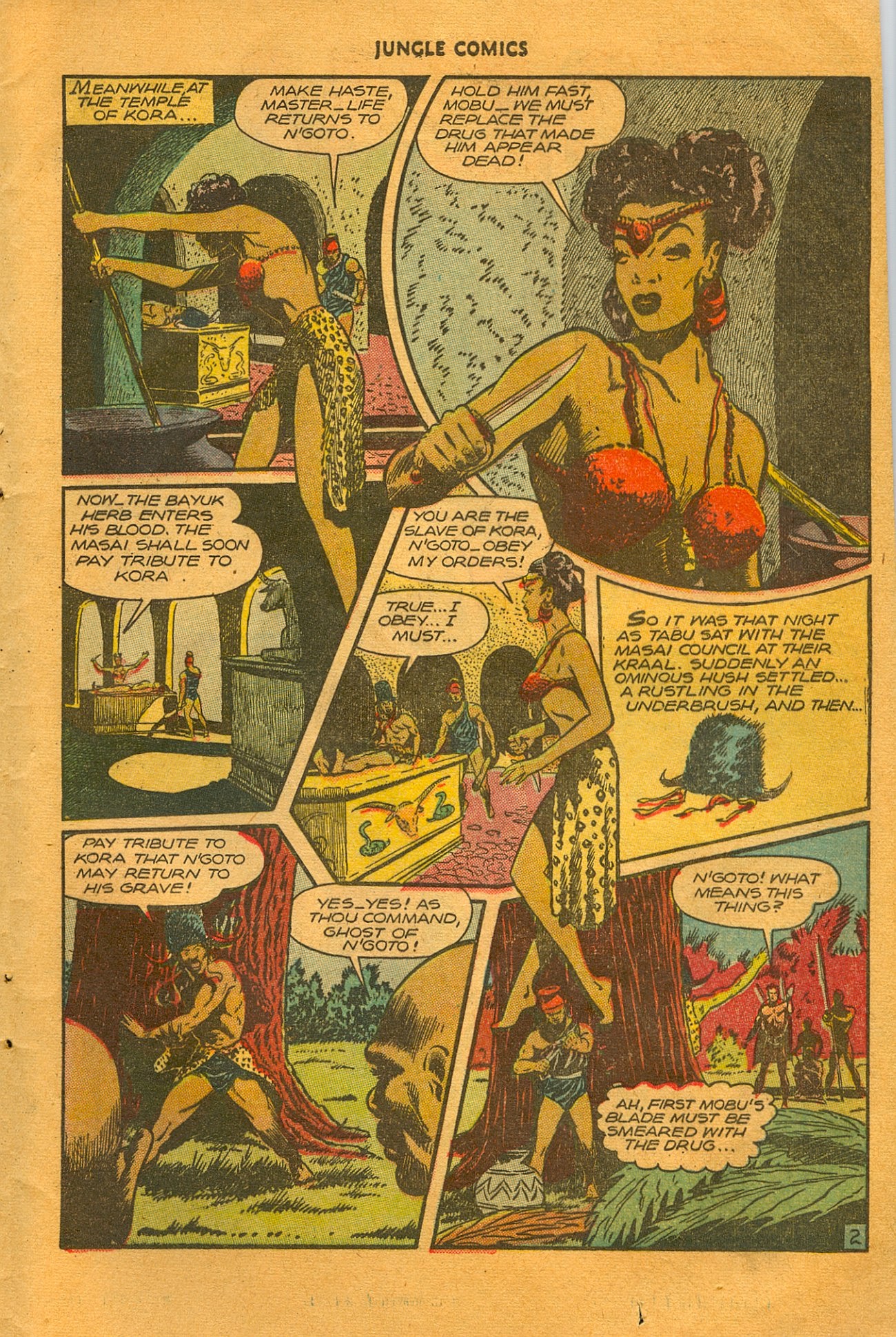 Sexy black traitorous tribeswoman betrays the hero to take the tribe's gold, but gets tricked by illusory elephant stampede and falls into a river with crocodiles. (From Jungle Comics - Tabu)