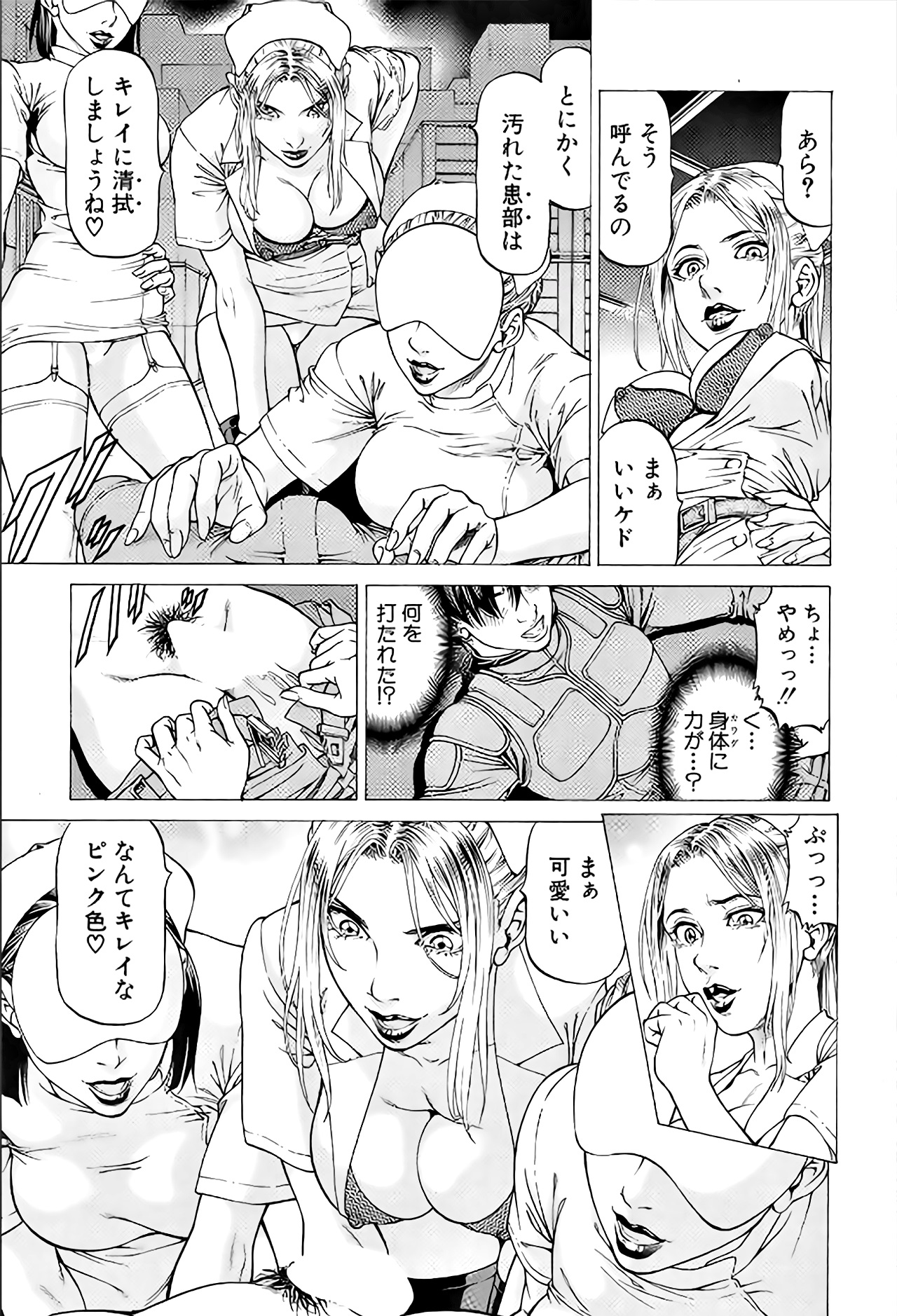 A hero fighting terrorists is kidnapped and severely raped by women dressed as nurses. The hero is soon rescued by another woman but he is traumatized.