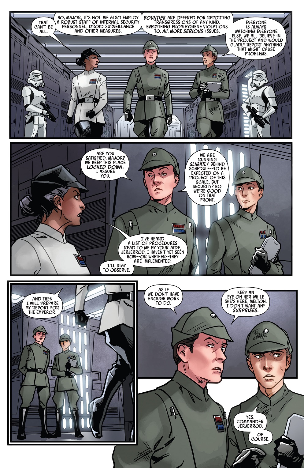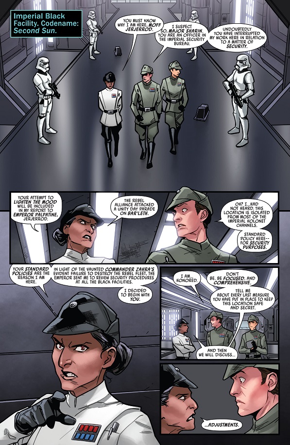 A very bossy Imperial ISB major makes her debut. Not sure how rank is supposed to work since Jerjerrod is a Moff therefore he must outrank her significantly.