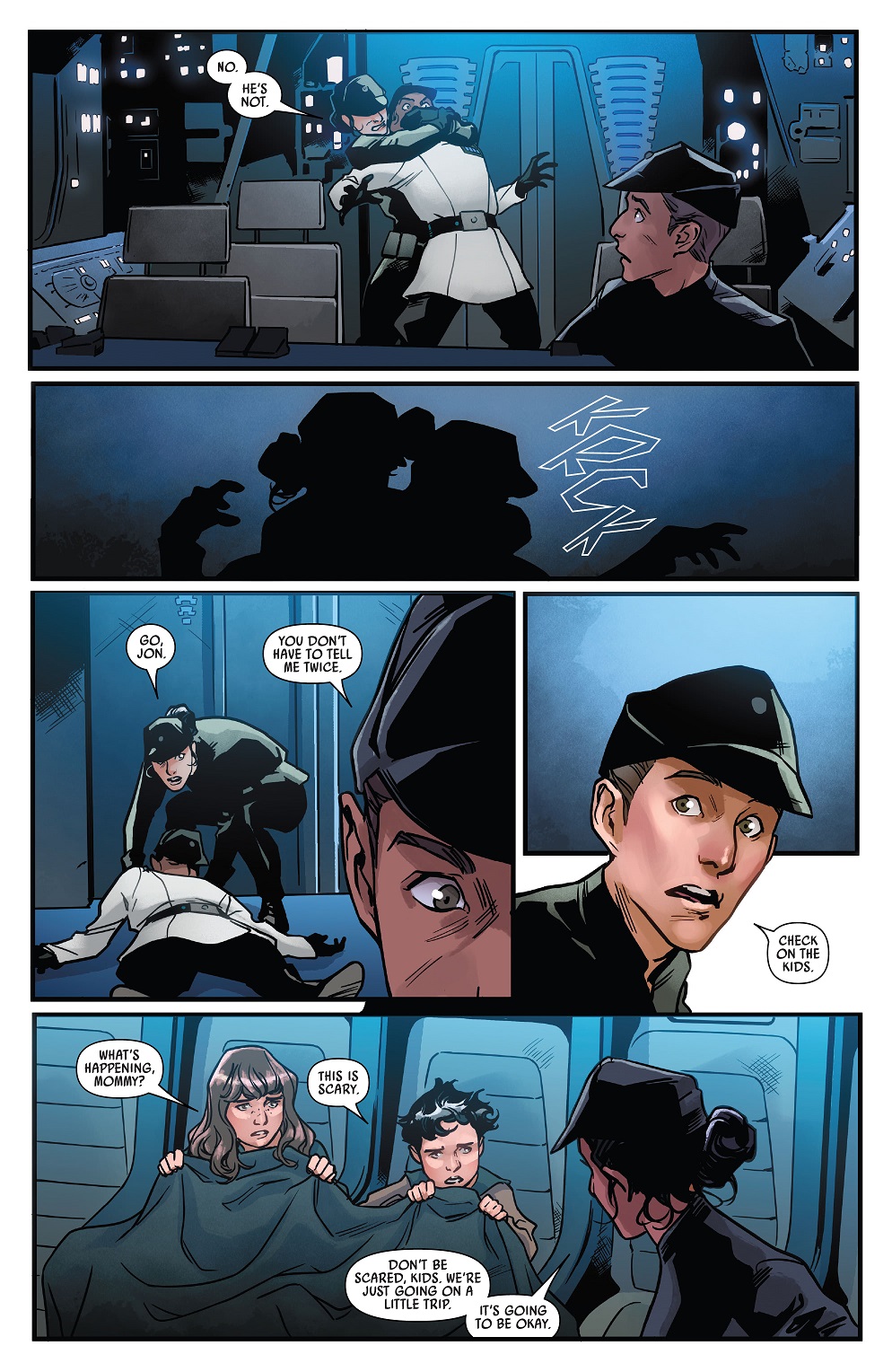 They decide to make a run for it by commandeering the visiting ISB major's ship. As a result the heroine stealthily kills the woman officer via a neck snap of all things. Genuinely wasn't expecting this brutal end to a female villain given the general somewhat lighthearted and flippant tone of the story. In days gone by this named Imperial would have been a recurring or story arc antagonist. Not so in the new canon! Women in the Imperial forces get bumped off as dispassionately as the men! Great to see.