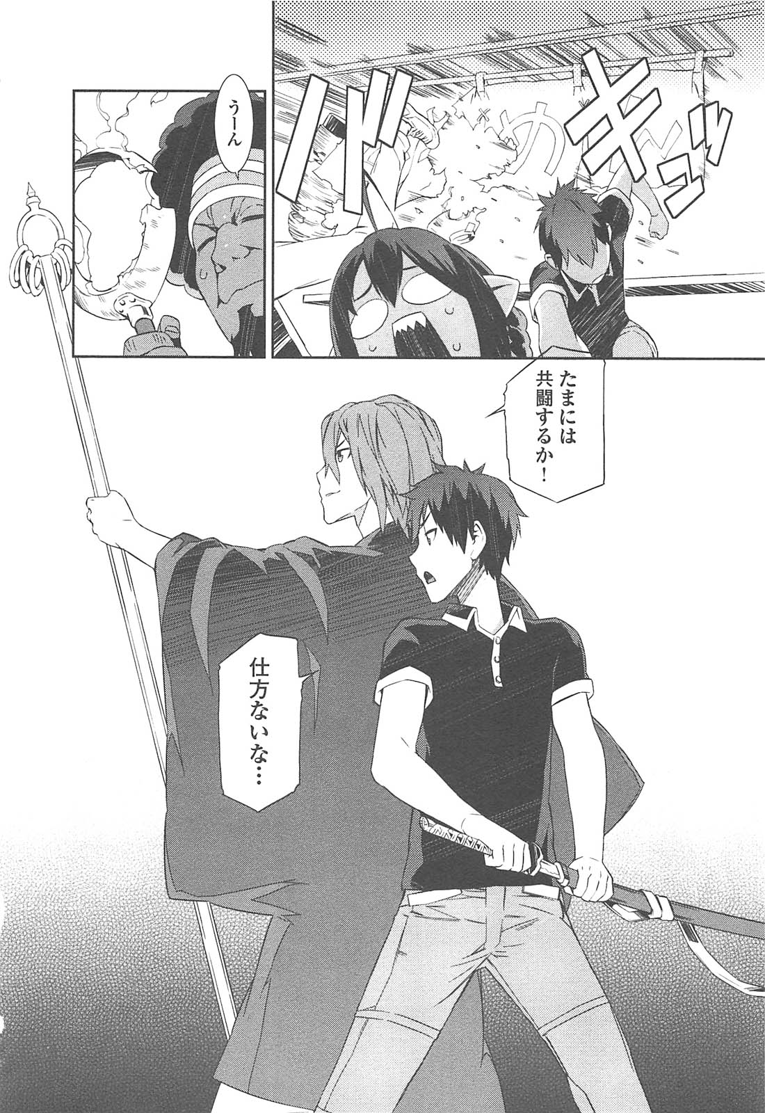 Story about a a boy named Atsushi Tsukimori and an older sniper girl named Chizuru Ayao. Not sure if they're siblings, but she's obviously a shotacon for him. They're trapped in a world of hostile monster girls who use magic bullets to transform into beasts.