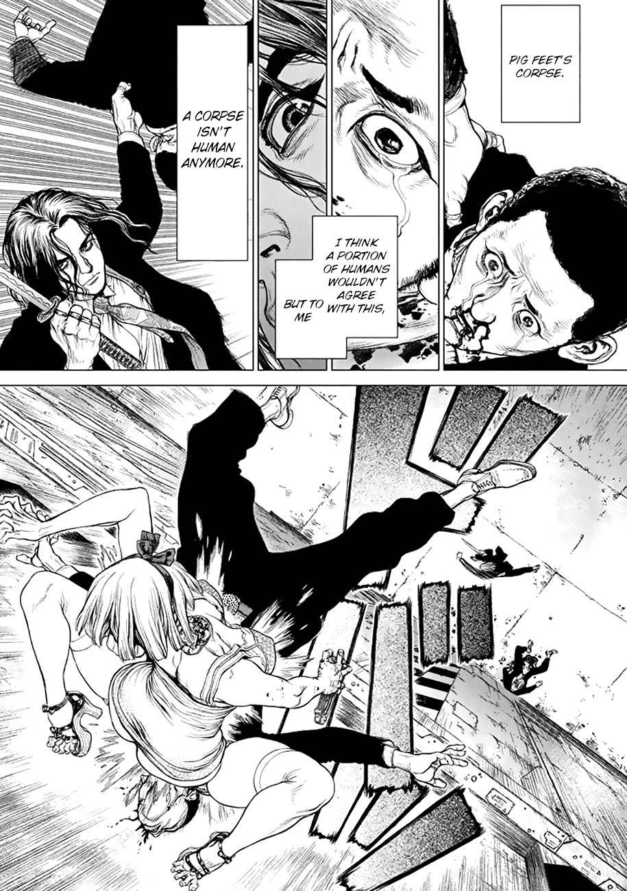 On chapter 13 the sniper contemplates how the monkey-girl was her first kill, but there's just one more panel of her corpse. I wanted more....