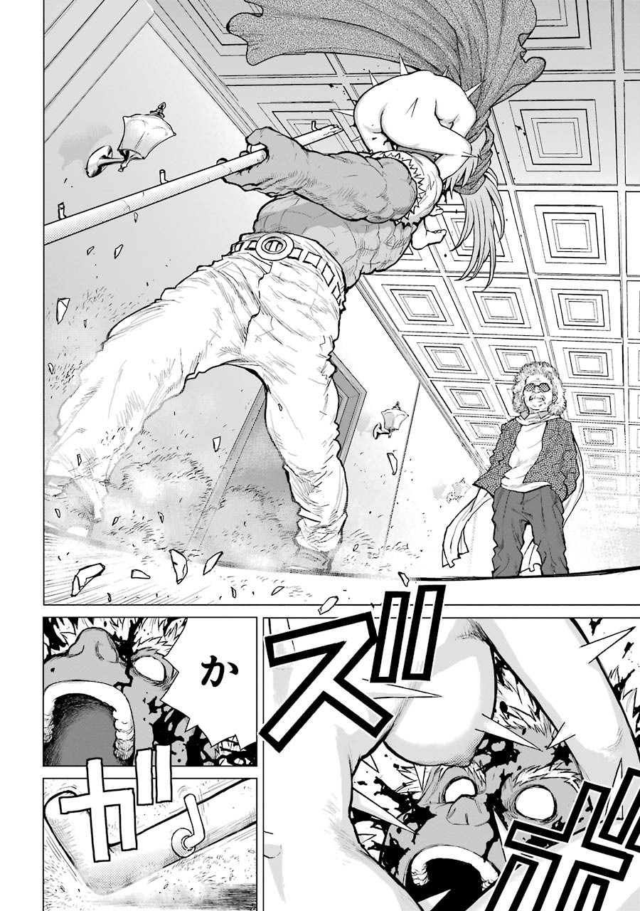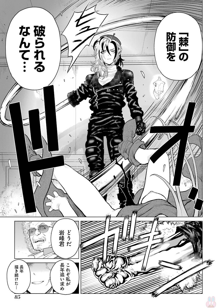 I remember somebody mentioned the stickbug girl from this manga before. This one is the spiny beetle girl, a cute nude assassin with spike powers. The parody of Shotaro Ishinomori easily knocks her down with a energy punch close to her face, causing her to pee herself. She later tries helping him fight the parody of Osamu Tezuka but is promptly stabbed and passes out. She seems to be still alive when the characters escape, but isn't seen again.
