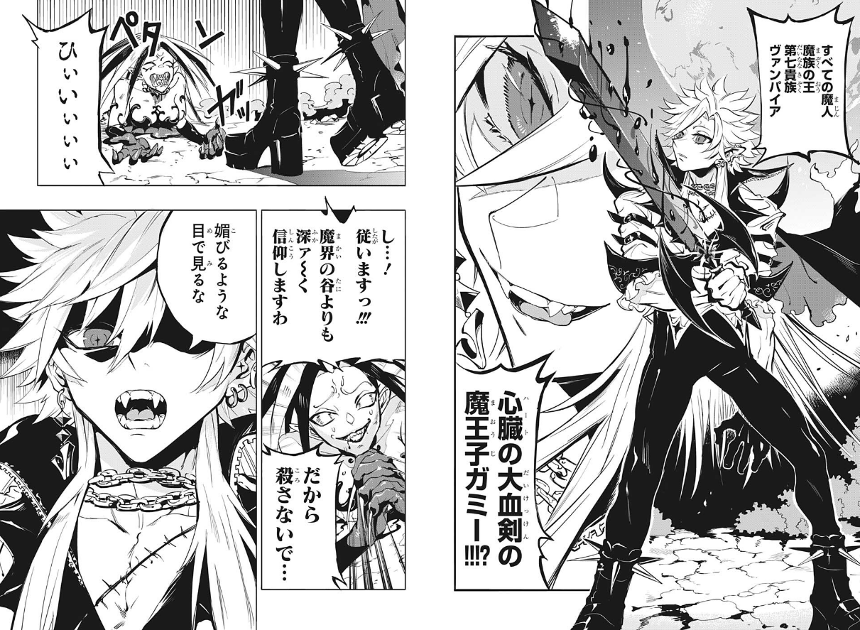 An one-shot story published by Shonen Jump. A vampire villainess is introduced and killed in the span of one chapter. She begs for her life after being bissected but the protagonist stabs her in the head just barely offscreen.