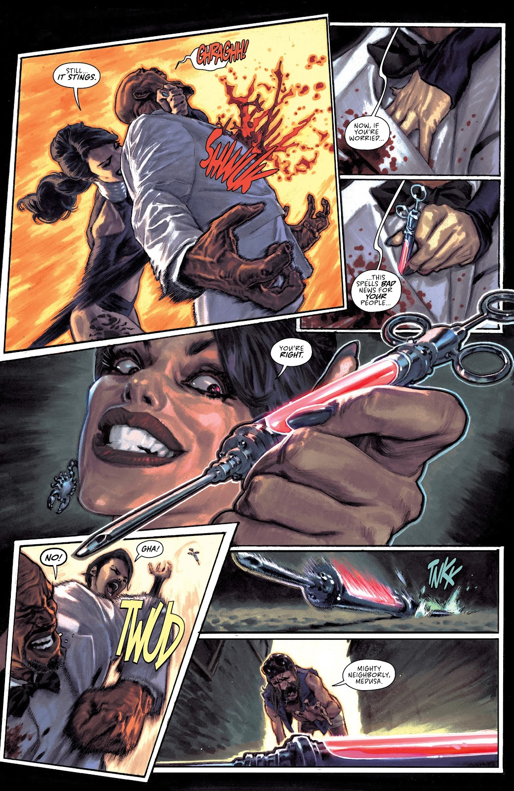 Dark-skinned demoness with floating hands and a flame bra barely covering her boobs barely appears at all, as she is exorcised and slashed to death without a fight, between pages. Tsk, tsk...