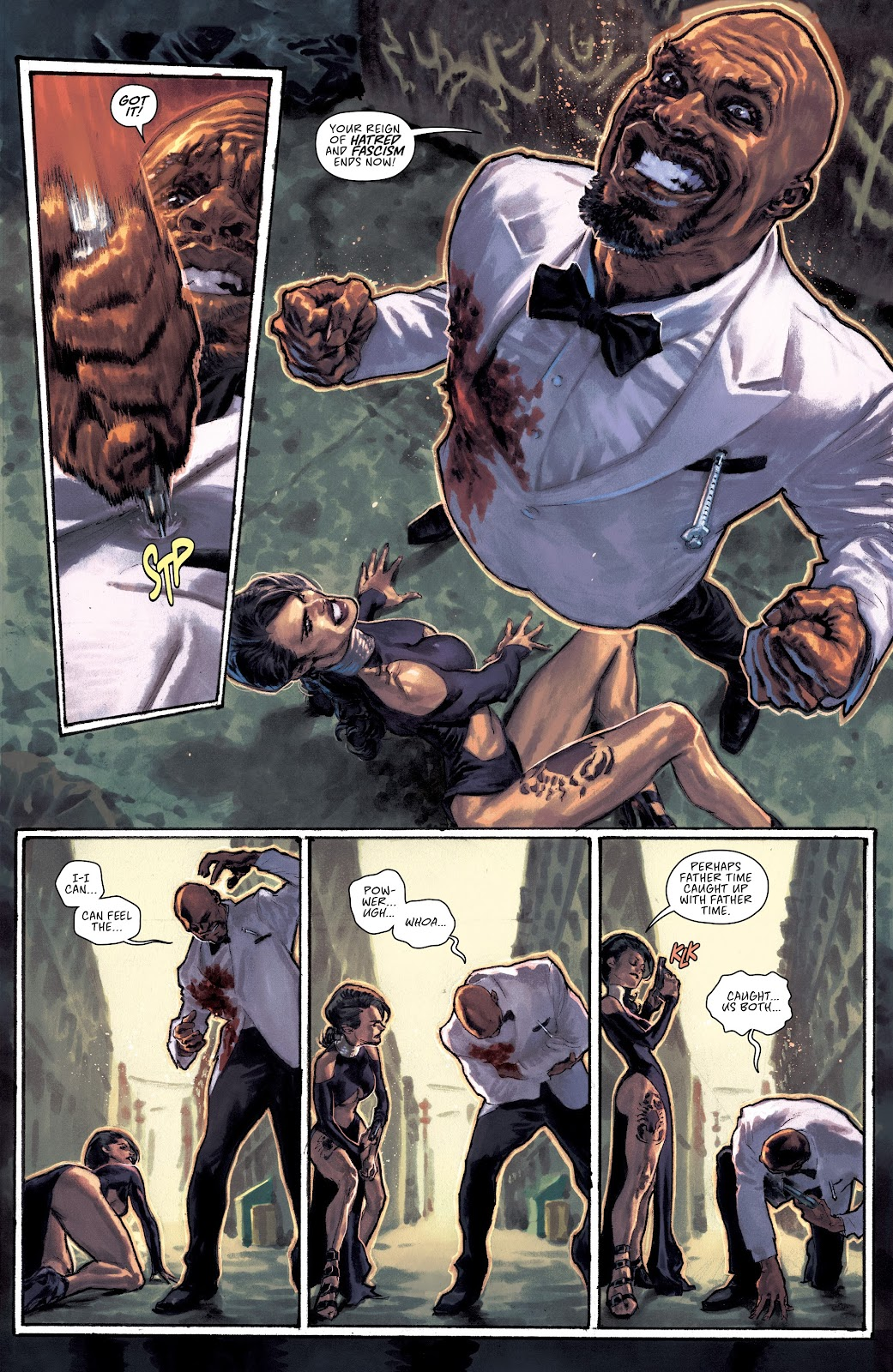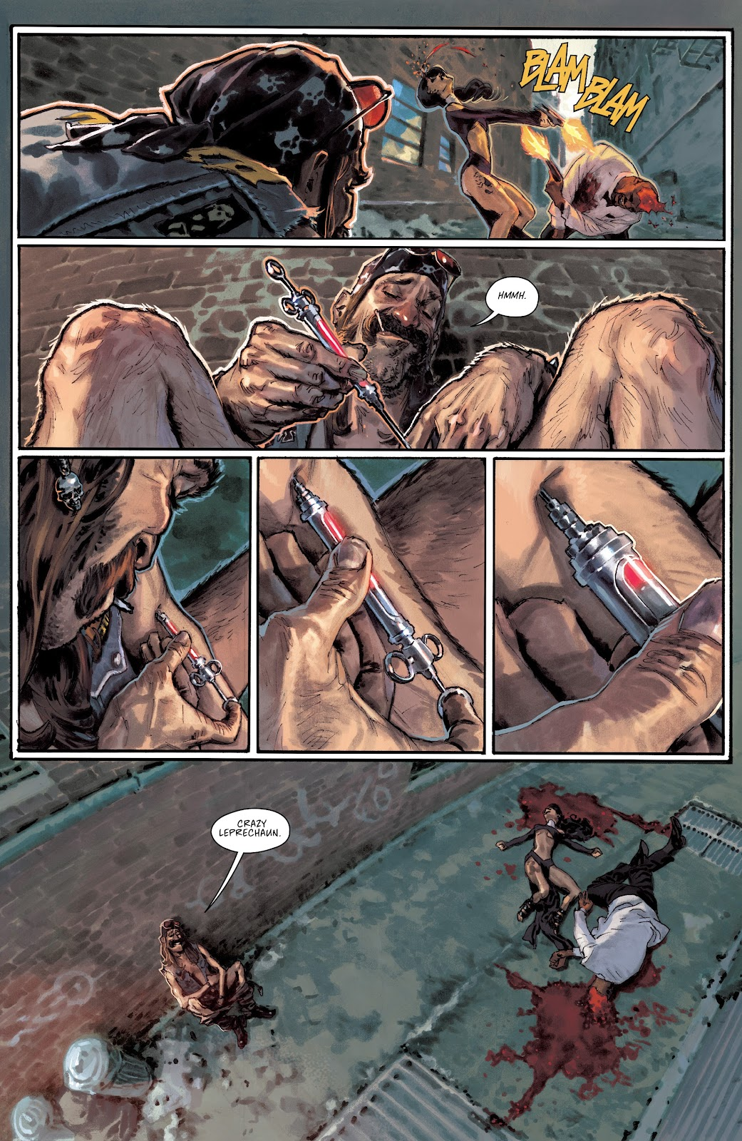 Unnamed evil female assassin fights a spy for a secret formula, and they end up shooting each other in the head while the hobo protagonist gets the syringe in the confusion.