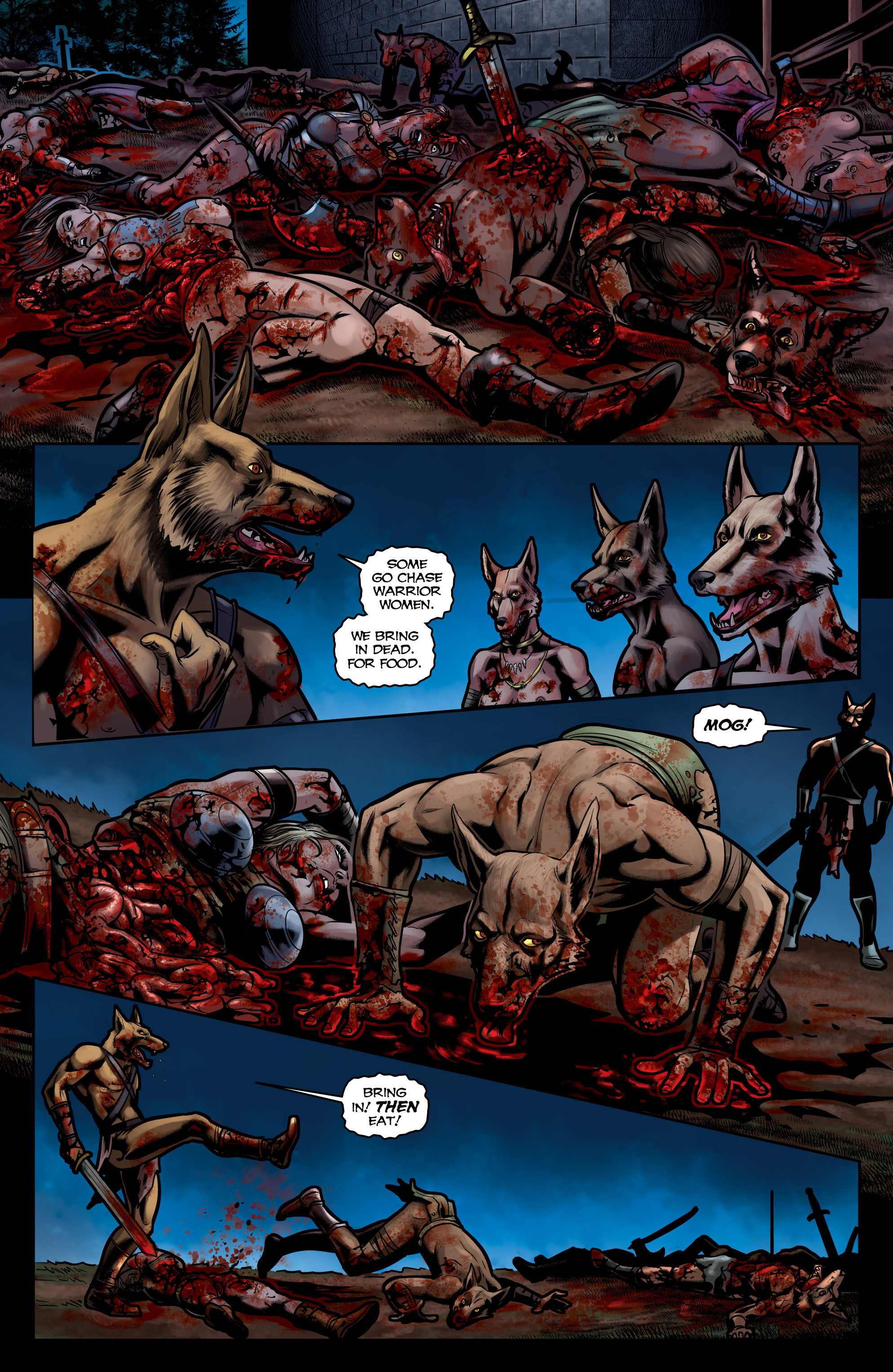 Btw, in another Belladonna series, she fights some evil witch who has cynocephali soldiers - dog-headed men and women who eat humans. Many of them are female, topless, and get brutally killed by the vikings. Two of the shield maidens actually (somehow, off-screen) skin the dog heads of dead cynocephali and infiltrate them.... somehow nobody notices their heads cannot emote, I guess? :D