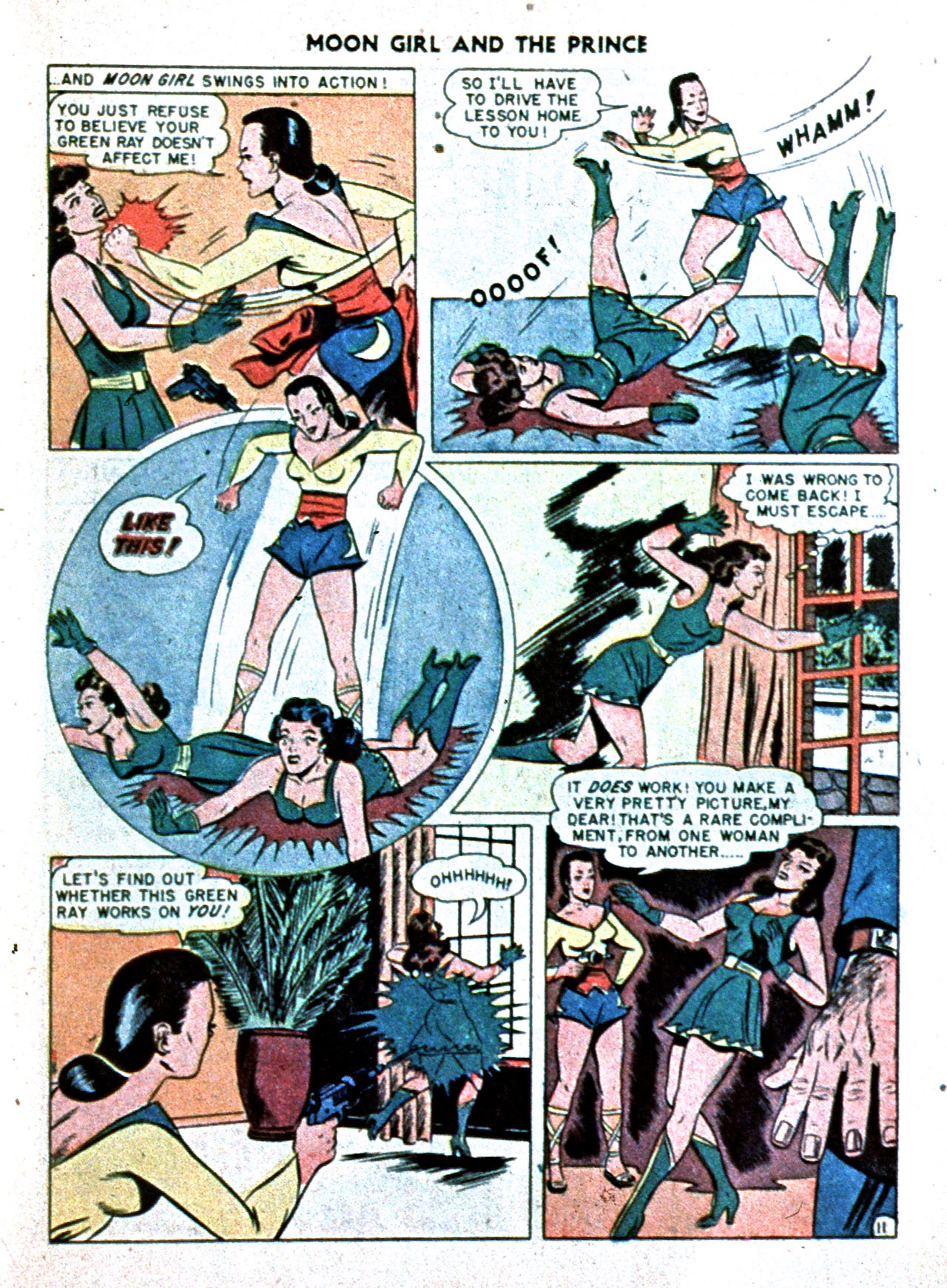 Burgie later fights Anne and is disarmed out of her elemental staff by the girl. The villainess tries using her mirage clones but it doesn't work on Anne and she's stabbed on the breast.