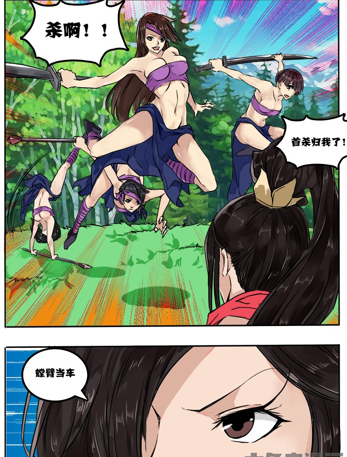 This was pretty nice, though Chinese? Loooks totally like manga to me.Just reading a Chinese web comic "超三国(Three Kingdoms Super)", a trans sexual version for Chinese classic epic "Three Kingdoms". About episode 5, main heroine Zhao Yun began to slaughter evil warlord Dong Zhuo's minions: