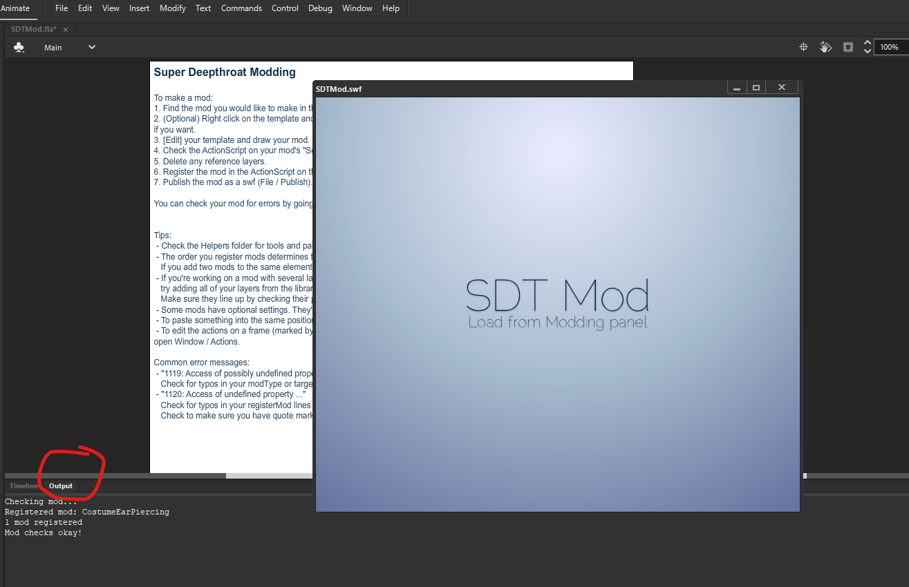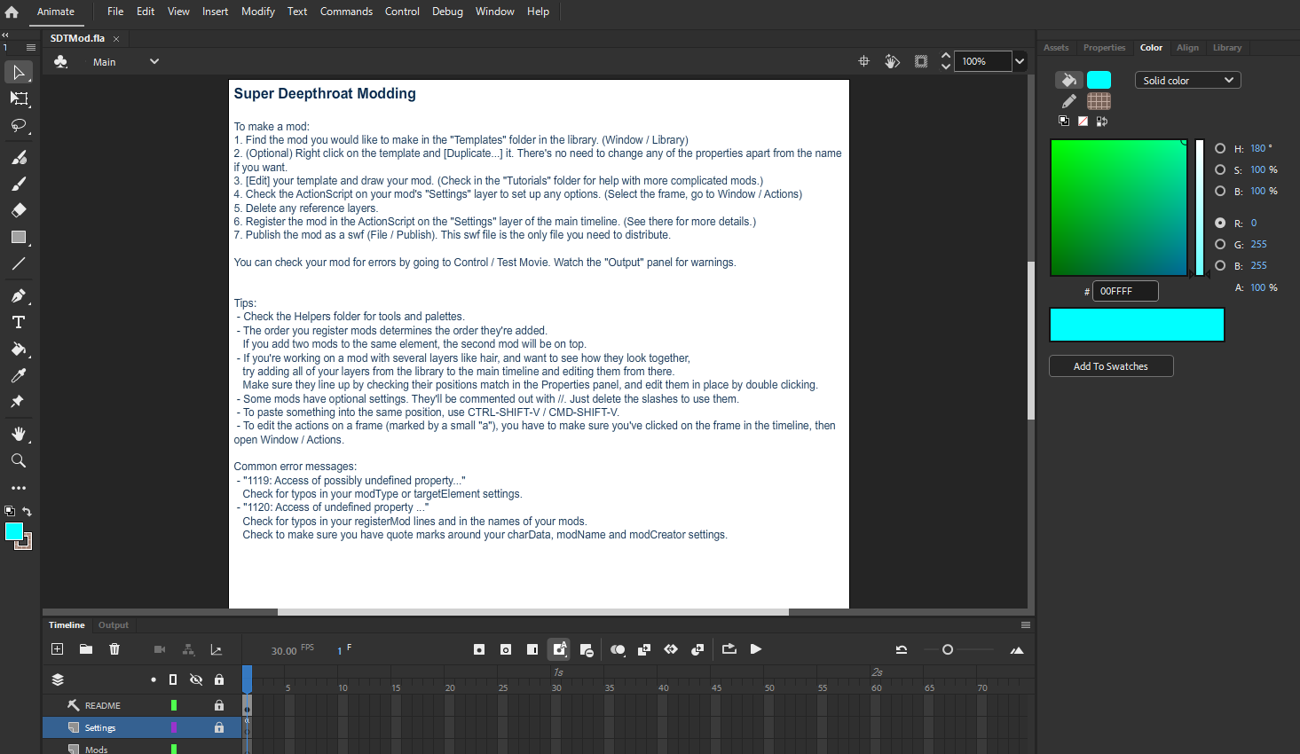4. Open SDTMod.fla in Adobe Animate. This is what your screen should look like