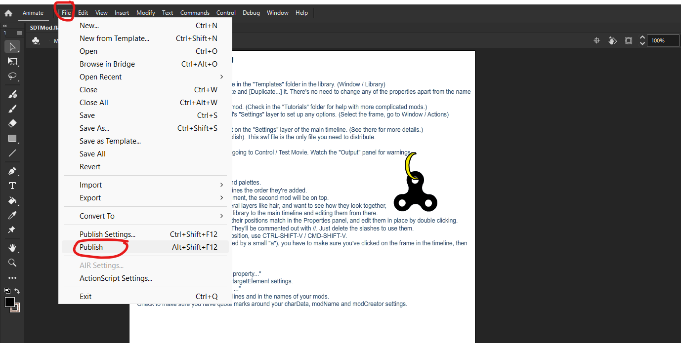 2. Your folder should look like this now, where SDTMod.swf is your published mod. You may rename this file and publish it on the Resource manager on Undertow