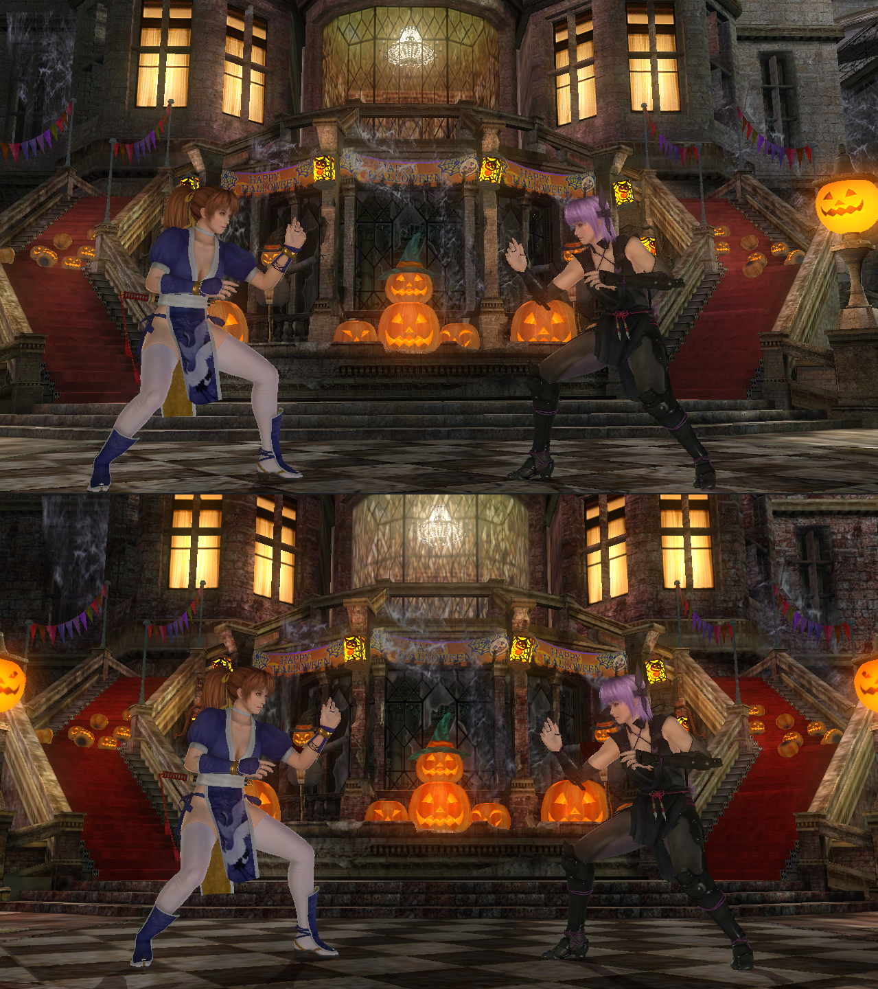 Update: Kept working on the rest of the textures of the stage to make it look a bit less bland and have the textures stand out a bit. Edited everything from the walls, to window, pumpkin and carpet textures. Check it out.