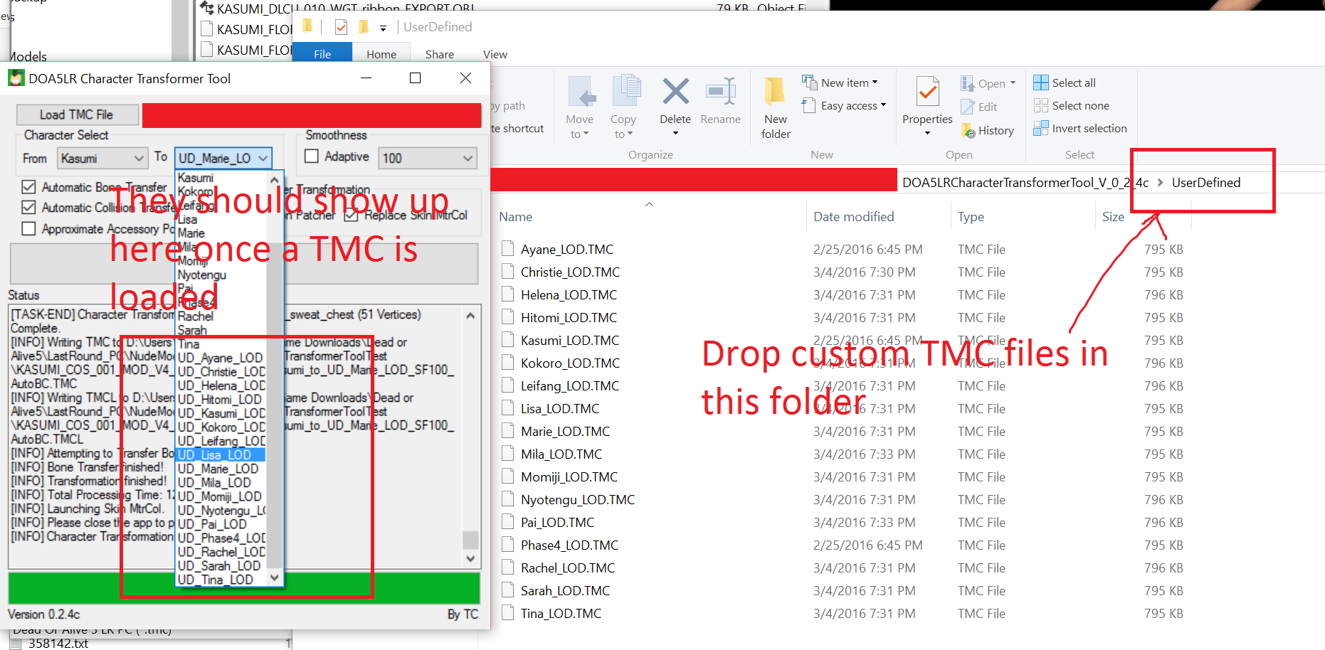 4. Hit Transform button - results will be output to the same folder with <original TMC file name>_to_<toCharacterName>_<TransformationSettingsIndicators>_SF<number>