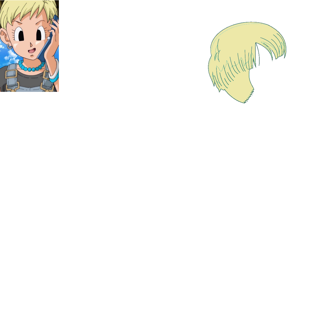 trace a Bezier curve across each important line that we can find in the source image. After all of the lines have been traced we will see an "outline" or "wireframe" version of the hair. We can then use the Paint Bucket tool to