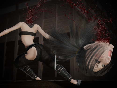 here is Ayame from Tenchu. i like the Tenchu games because Ayame screams when she dies, and they give her some nice struggling death animations. i have also been working on my blood effects, i think they are better but i want to make them look more 3d.
