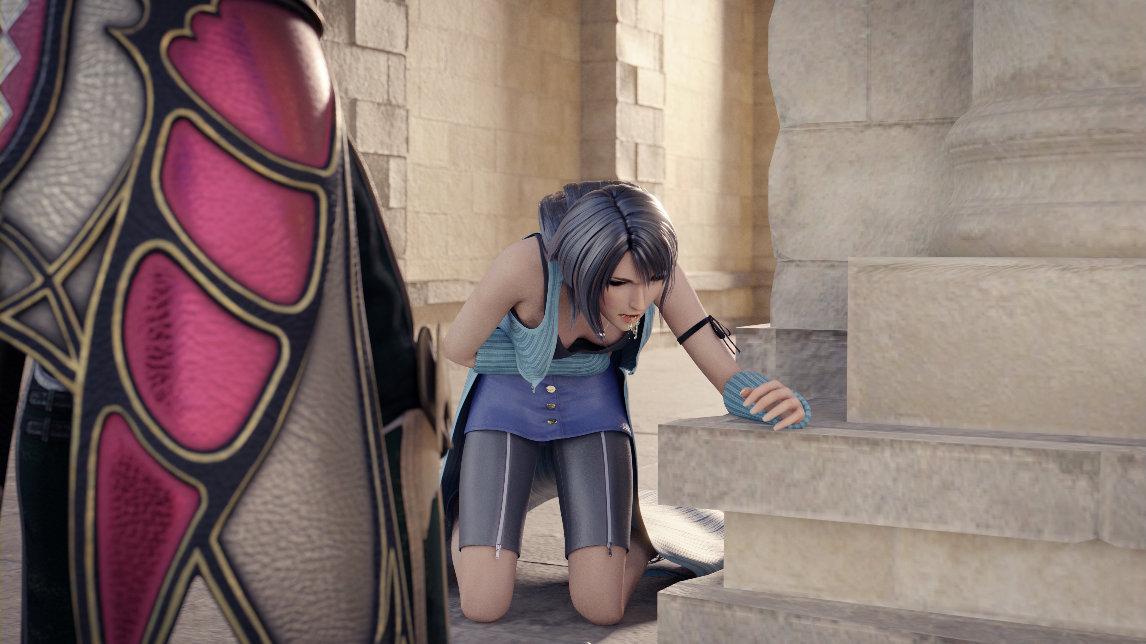 Nice work! Those are some high quality models, and the lighting is spot on, too. Especially love that second one where Rinoa falls to her knees holding her belly while puking.