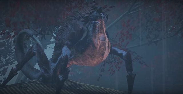 They are Creatures that eats and swallow the player whole by catching them by their tentacles , Swallow and devour them through their mouths and finally keep them inside their bulgy stomach , If the player you take control is the one eaten then the moment it grabs you then the camera switches into first person and see its tentacles approaching you then you get to dive into its mouth and stomach in First Person view and gets eaten , Consumed and swallowed whole , While you are trapped in its stomach then you see your surrounding like normal but with a reddish filter indicating that you are eaten inside a reddish flesh stomach and the camera walks whenever the monster walks and the monster has got a very big bulge due to swallowing the player , If one of your partners is the one eaten and engulfed then you got to see her being eaten and swallowed whole in third person view through your eyes , I am yet to see a gameover while the player is inside the monster's stomach so i don't know what will happen in that case and i am yet also to see a close up shot of a partner getting eaten so that i can rate the animation , And Just like Resident Evil 6 there is a critical health mode for the player that the character will be in a critical health and will crawl and either a partner will heal her or the monster will catch her , the vore scene happens only in that critical mode