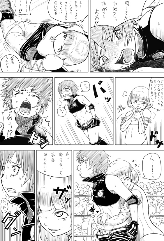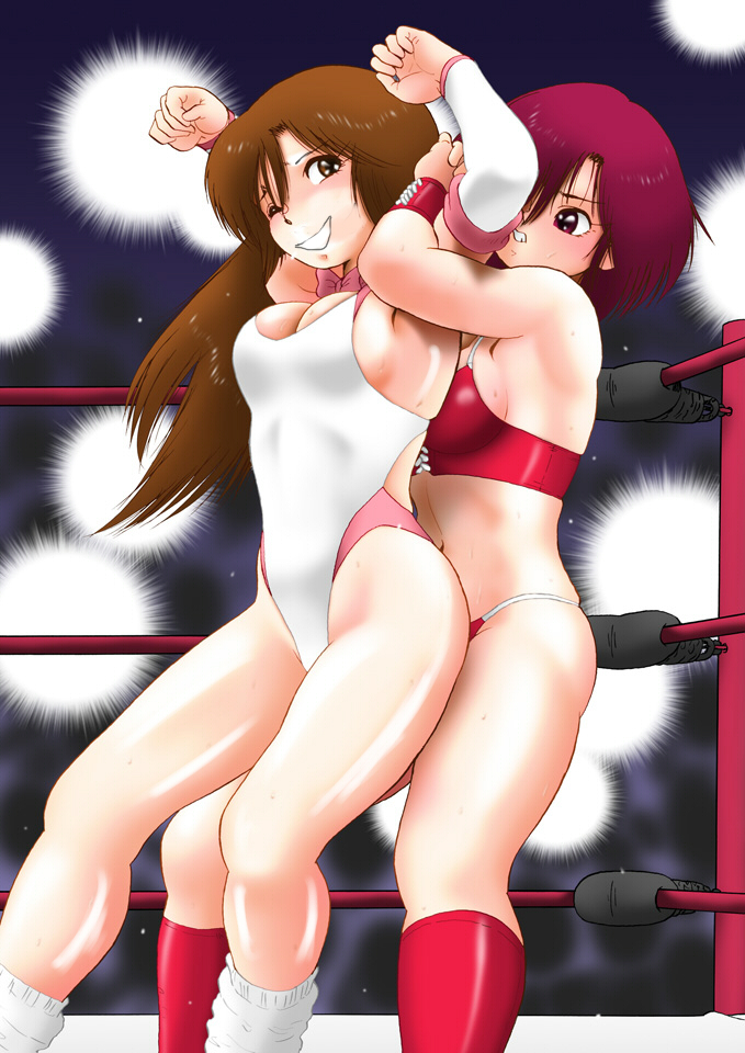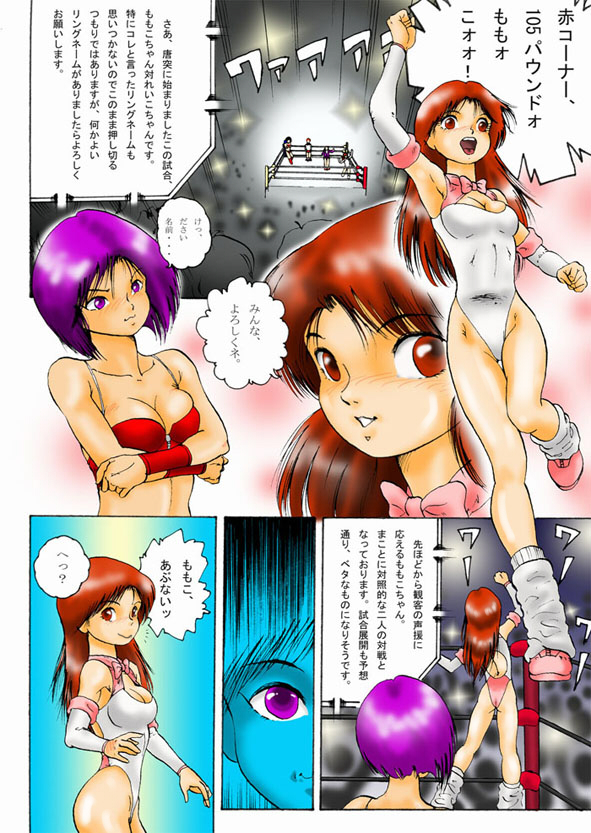 (Later, Reiko will be defeated all five times. Momoko changing the rules, in during fight. If Momoko wins, she takes Reiko's own boots. Reiko is very angry, but she had no choice. Momoko easily defeats her, and then, she gives her new condition. The loser obliged kissing to winner's bellybutton, in front of the crowd. Momoko overpowered Reiko again, and ordered her to kissing bellybutton. Reiko tries to escape, but the red head catches her. Victory poses, taunts, etc. After the match, all covered sweat, happy Momoko, catches tired, embarrassed Reiko, binds her arms tight, and closes in her room.)