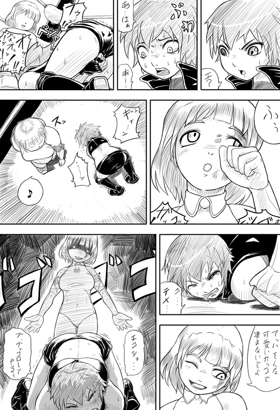 Reiko twitches, but her attempt was absolutely futile. She realized, that Momoko again used her own signature. Damn you Momoko! "Silly, you'll never defeat me with bearhugs! Ugh... you think, you can hold me, wimp?"