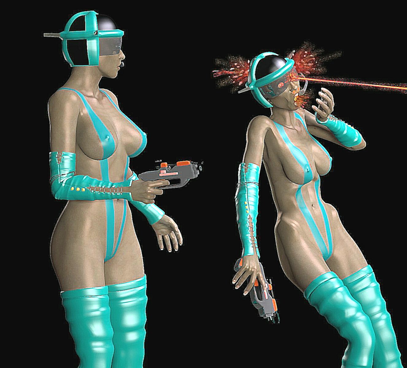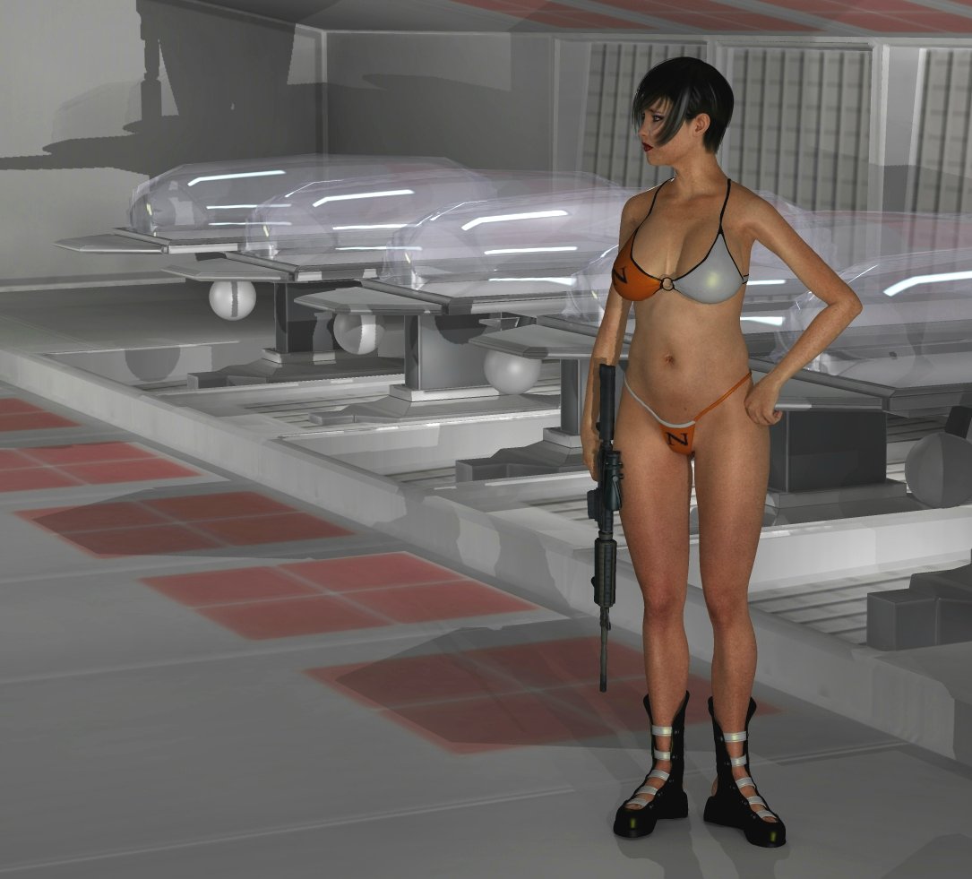 Thank you! Yes, she is an escaped prisoner and must kill guards to get away from the facility where they are performing horrible experiments on humans.