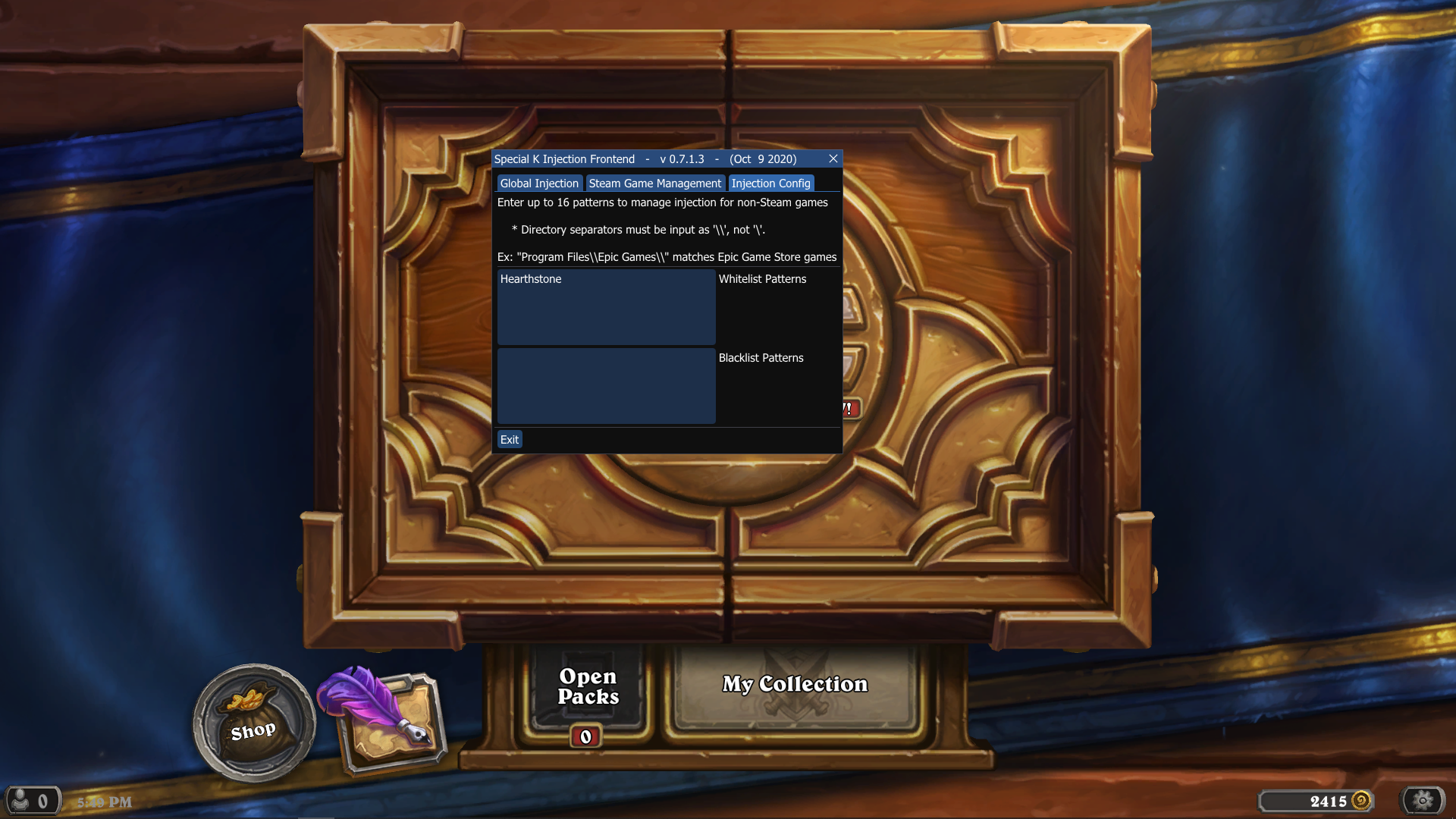 - Whitelist stores in c:\users\<username>\Documents\My Mods\SpecialK\Global\whitelist.ini