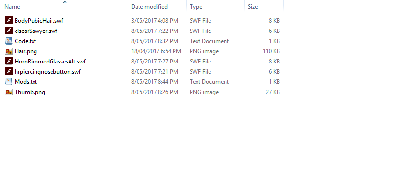 the two mods in question are the clscar and horn rimed glasses, when loading the character they appear then disappear but the other two still stick around