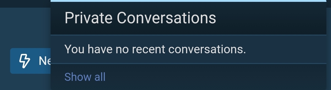No error messages. There is no "send a note" or "start a chat" button. Neither on a person's profile nor on the "messages" tab. No idea