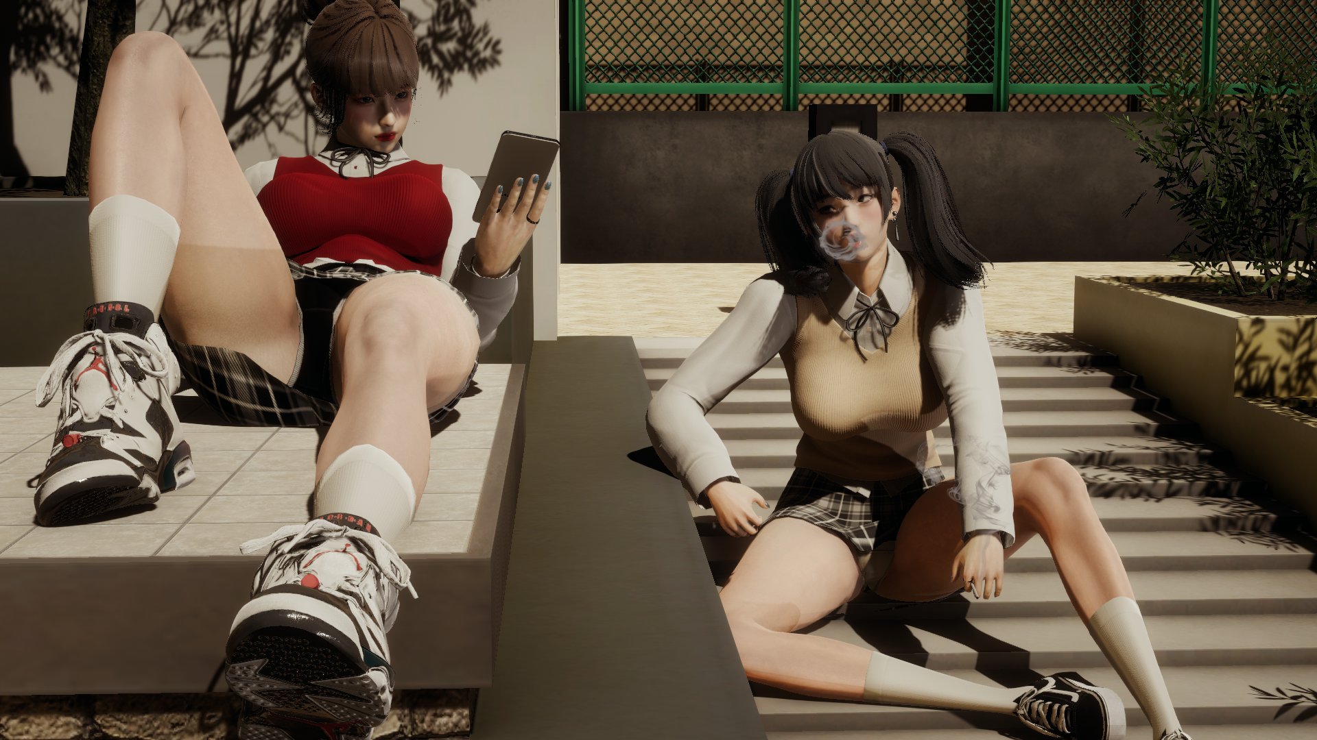Here is my OCs. Lilith and Mamya. Checking how tall they are now that I've got this kool wall mod.