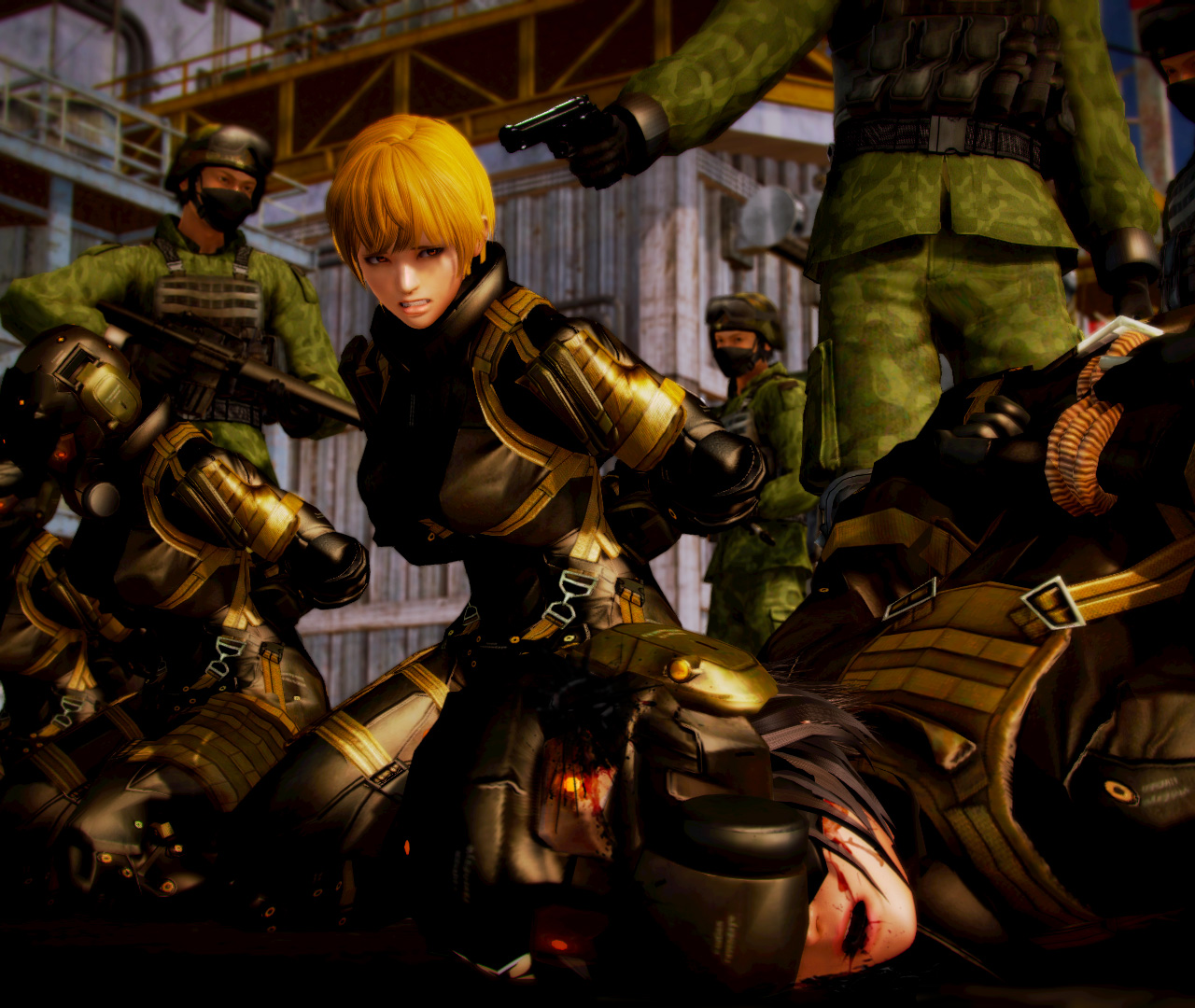 I'm a bit confused when you said blood effects, but I'm just gonna assume you meant the makeup tear stains. That's a skintexmod file. Skintexmod overlays a texture on the skin. It's also how I did the sweat on the kunoichi, and almost any time you see lots of tattoos on a body it's one of those. Like the tattoos on grgr's corrupt rouges back there.
