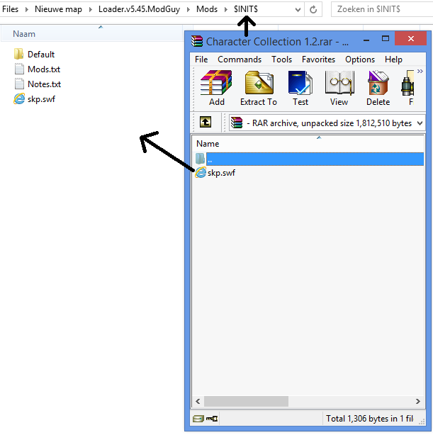 Step 3: Add the content .rar/$INIT$ to the Loader/Mods/$INIT$ folder.