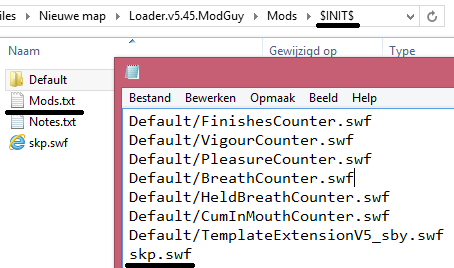 Step 4: Add "skp.swf" to the Loader/Mods/$INIT$/Mods.txt file.