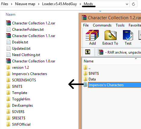 Step 2: Open the .rar file and place the folders in the "nameOfLoaderFolder"\Mods folder.