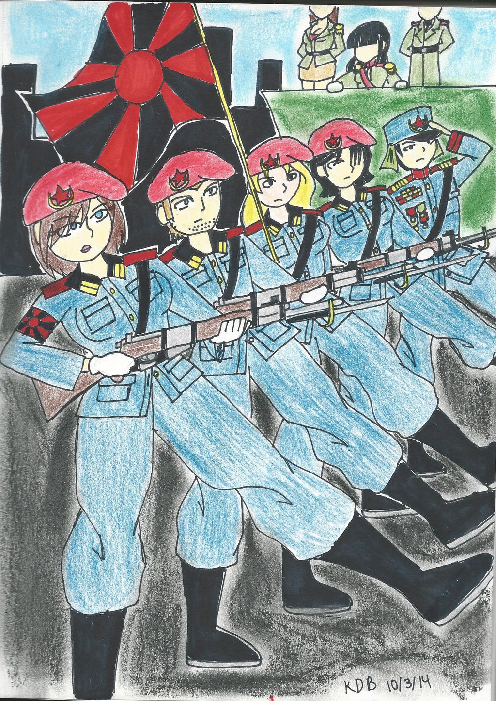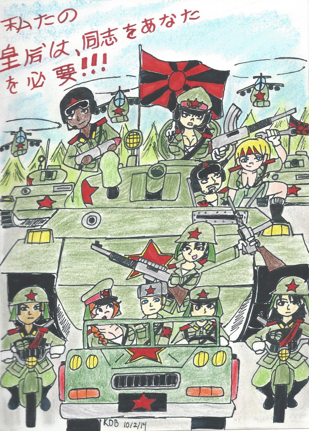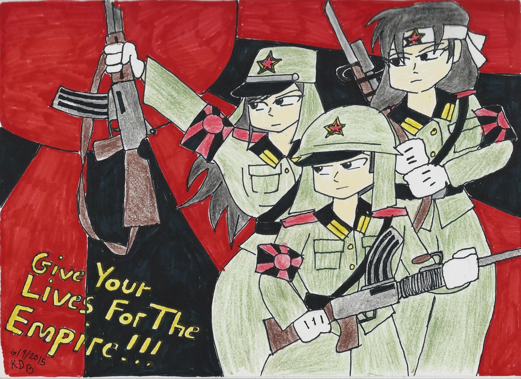 our_empress_is_the_best_by_kmon22-d8ii8be.jpg To make it short, just picture North korea only that their leader is a 15 year old soiled girl. Though they inspired by WWII Japanese, Chinese, Soviet, and German army.