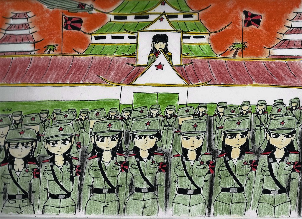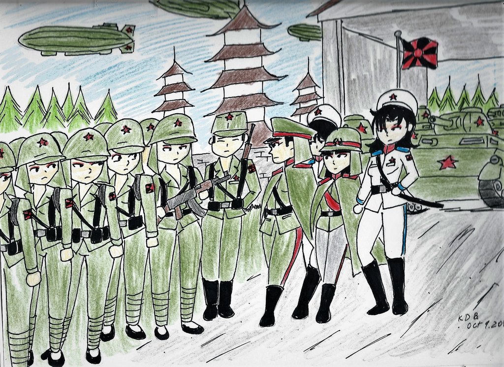 View attachment 71660 To make it short, just picture North korea only that their leader is a 15 year old soiled girl. Though they inspired by WWII Japanese, Chinese, Soviet, and German army.
