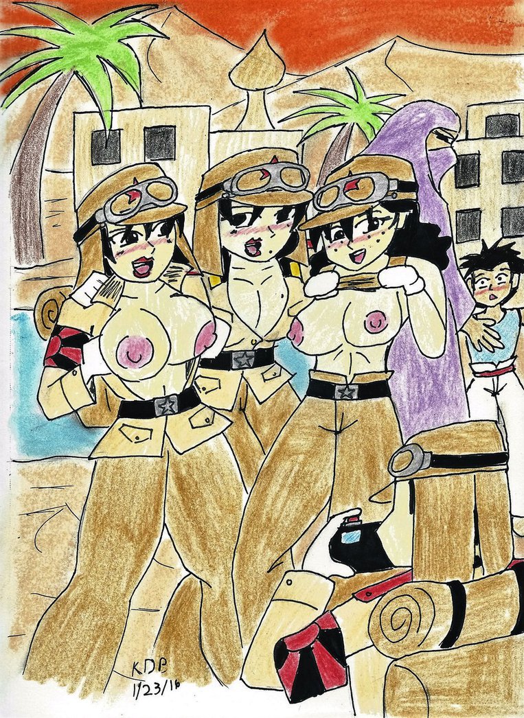I take it that the Neonese army is a female zako take off of the Imperial Japaness army juring world war 2, and what's the story with the black haired, bare chest primitive elf zako?
