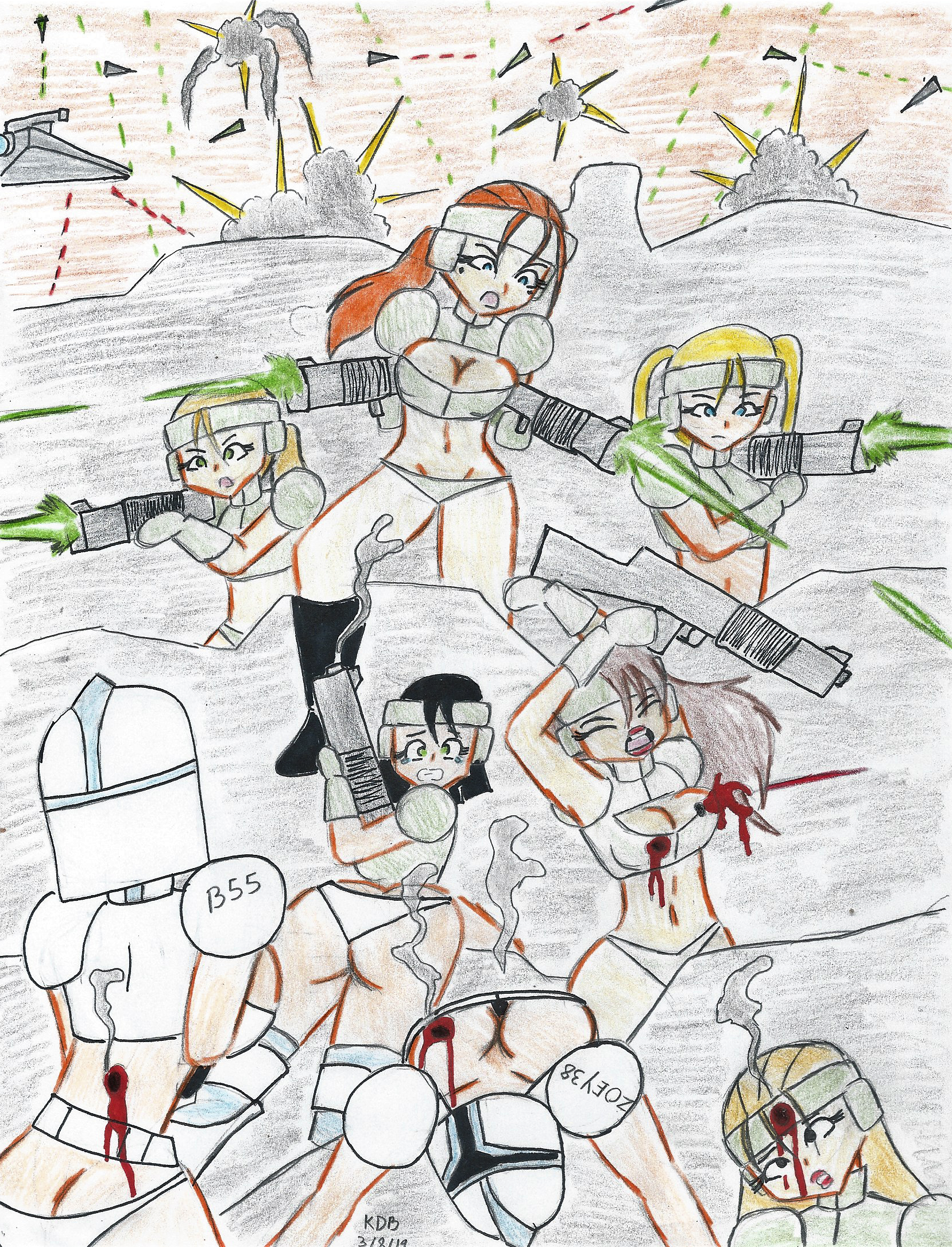 not much art but in Star Wars the Force Unleashed Wii version, their a level on Cloud City where a criminal named Choppa Notimo has taken over with his gang. they have many aliens in many roles, but pretty (not sexy but pretty) female twileks make up the canon fodder role. and I discovered a little glitch to fight infinite numbers of them. when you start the mission you need to leave the landing pad and after a short cut-scene plays just kill the enemies in the first room and stand at the door at 5:24. from there just wait and they will come at you 1 at a time, kill her how you want and wait for the next to come, you can kill alot of them and when they stop coming for a while just run to the elevator at 7:33 take it up to the top then get back on, go back to the first room where 2 Twileks are waiting and wait at the door again, it's fun for a bit and a good way to get force points to upgrade your abilities, just make sure to keep 1 save file set before you start this level if you want to play it whenever you want. the game doesn't let you replay individual levels. you go from the start all the way to the Death Star and can replay the Death Star for the 2 different endings, or you can start from the beginning again with all your current unlocks. I'd say play through the story once and unlock everything, then play through again with all abilities and save a game the 2nd time you get to Cloud City.