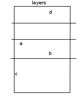 Don't know if this helps but here goes first here is your layers and how they stack up I'm going to call them floors like a building has different floors.