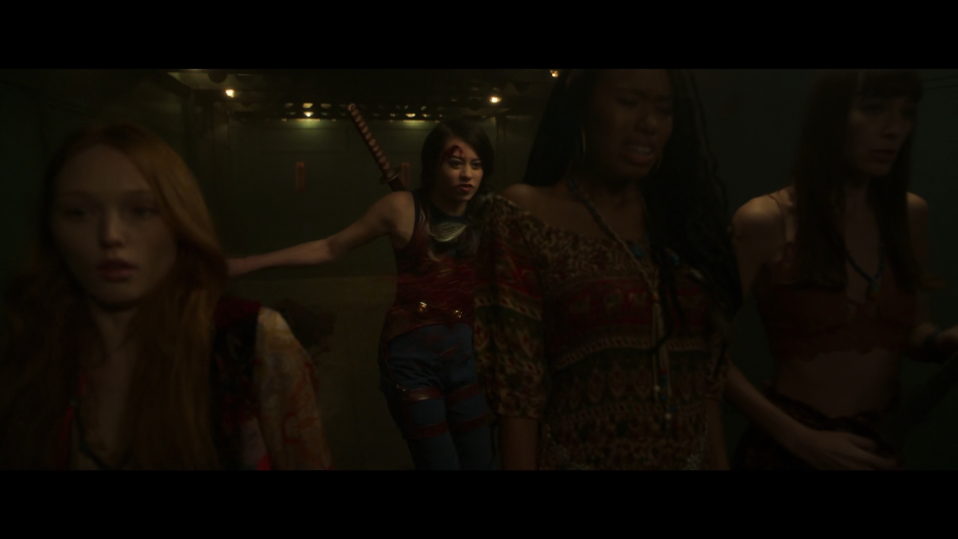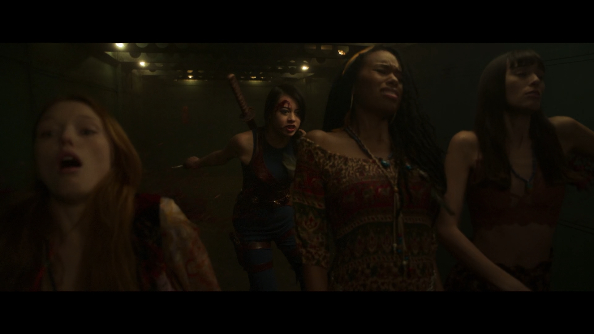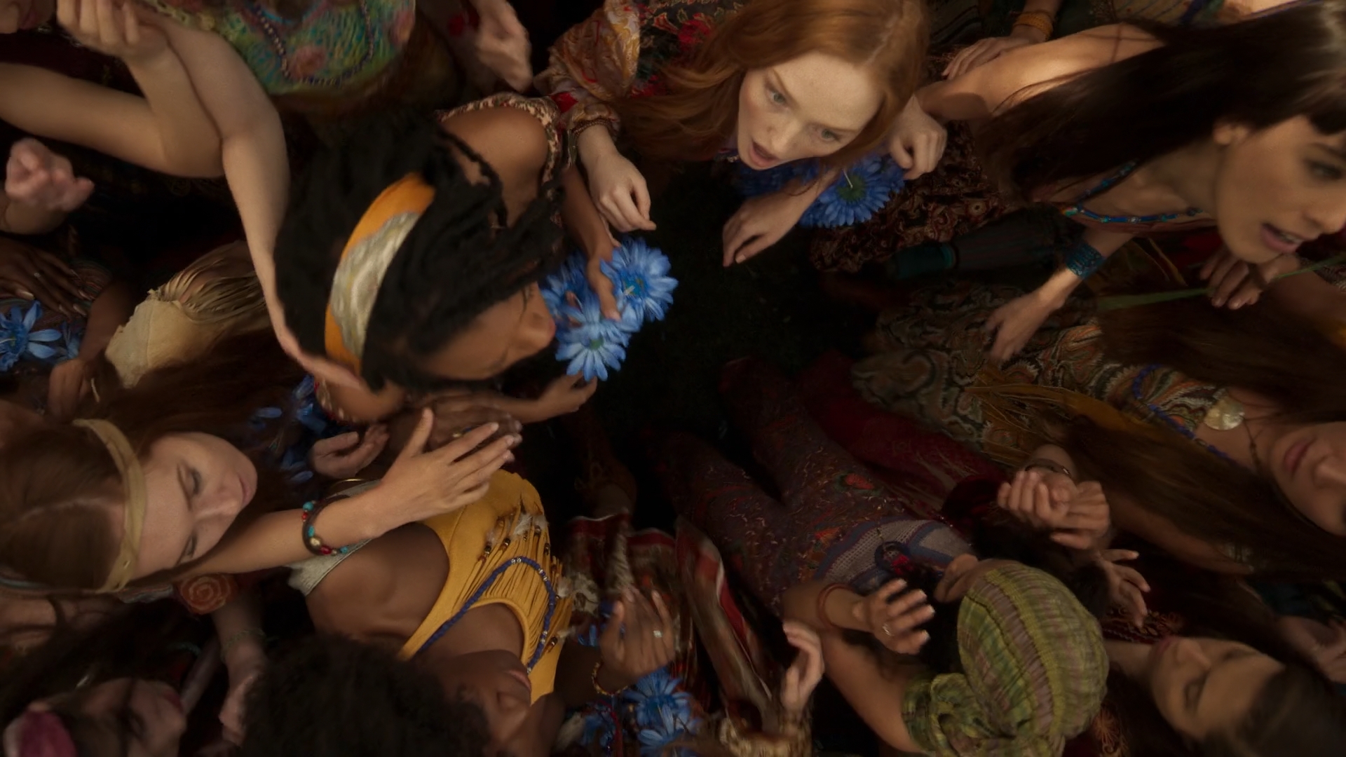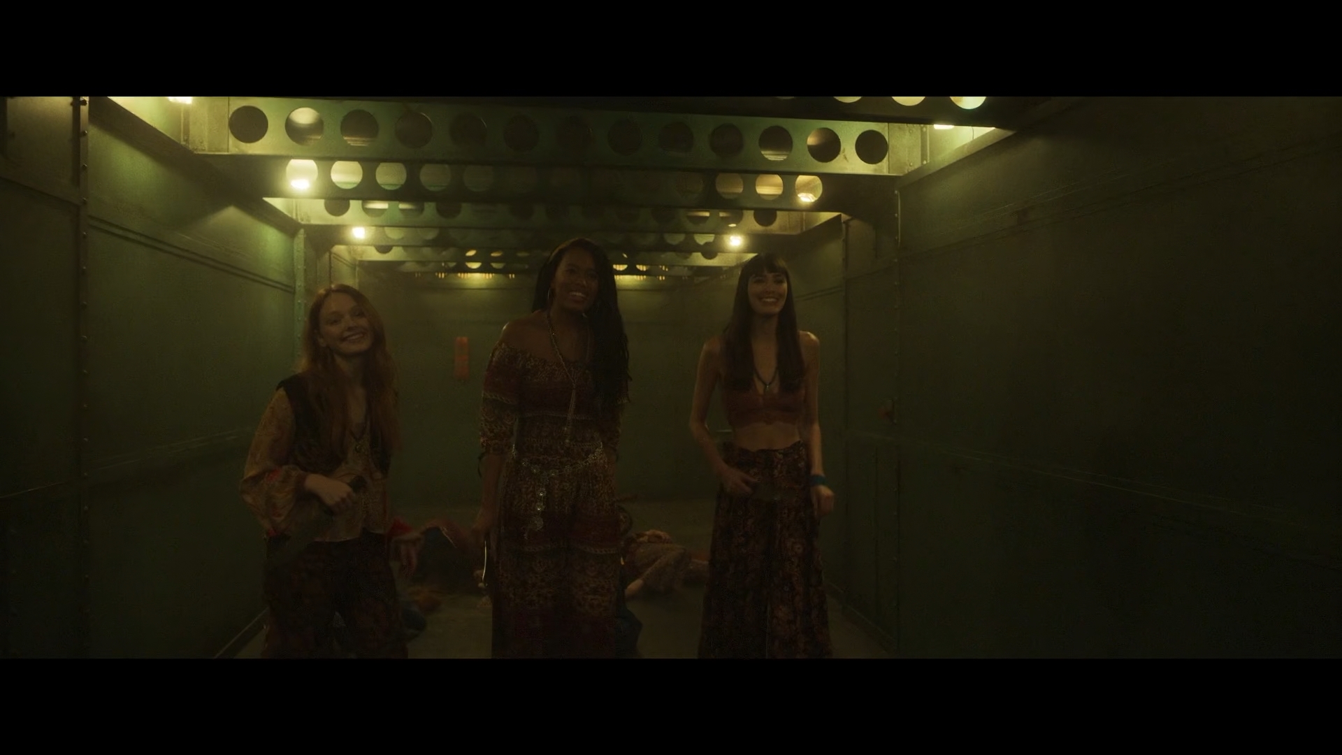 David's hippie girl army from Legion's newest episode. Man love these outfits. The fight scenes against Kerry are sadly mostly seen on monitors in the background, but we get some nice view of the bodies, and the last three get taken out by her with one swipe to the back (they got distracted when seeing David who was actually body-swapped by Syd.