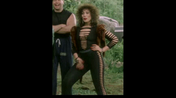 In the first gif, she stands laughing next to the boss of the Bad Girls zako, who ends up facing her demise along the course of the movie.