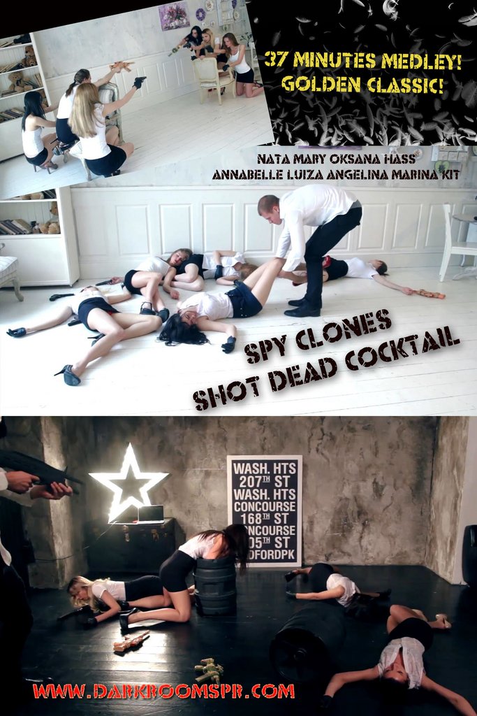 3 sexy henchwomen are chasing a female agent, who takes them out with a silencer, then strips them