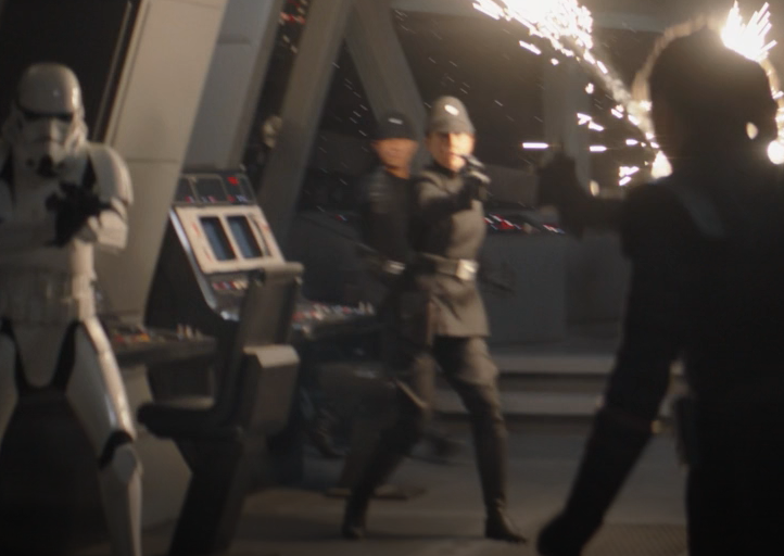 Quite a few female imperial officers are among the crew the heroes wipe out when storming Gideon's vessel. You can even see a hapless female TIE Pilot get gunned down while trying to surrender! Even the very shapely and increasingly popular unnamed female comms officer doesn't make it. Thought she might have stuck around. Never mind. I particularly like the all black uniformed female officers. One shown here below gets the best shot in my opinion.